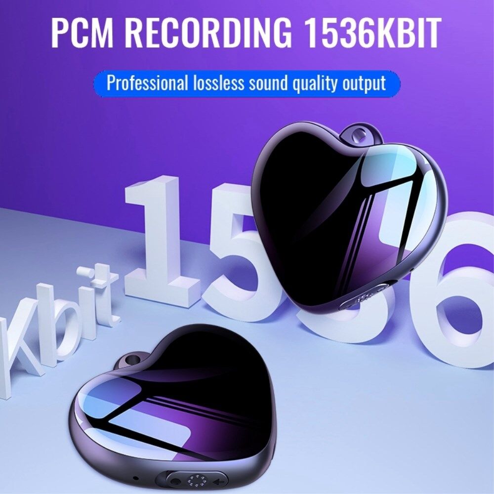 • Mini voice recorder with a unique heart-shaped pendant design, one can wear it as a necklace or hang it on your keychain
