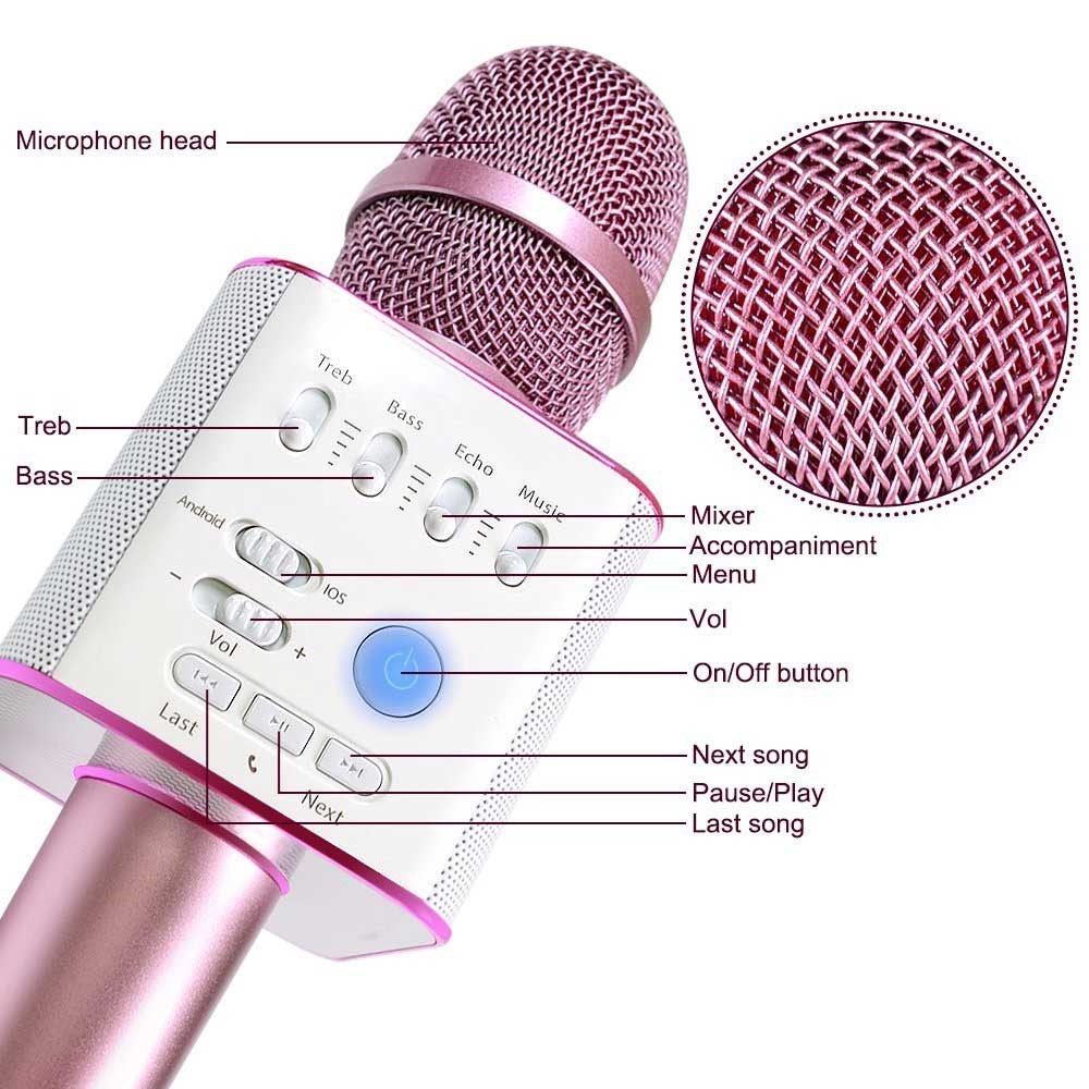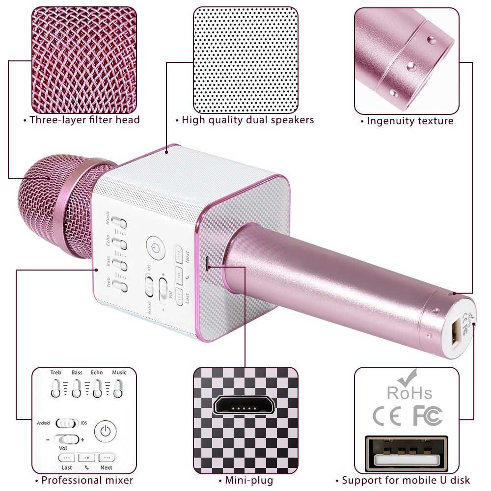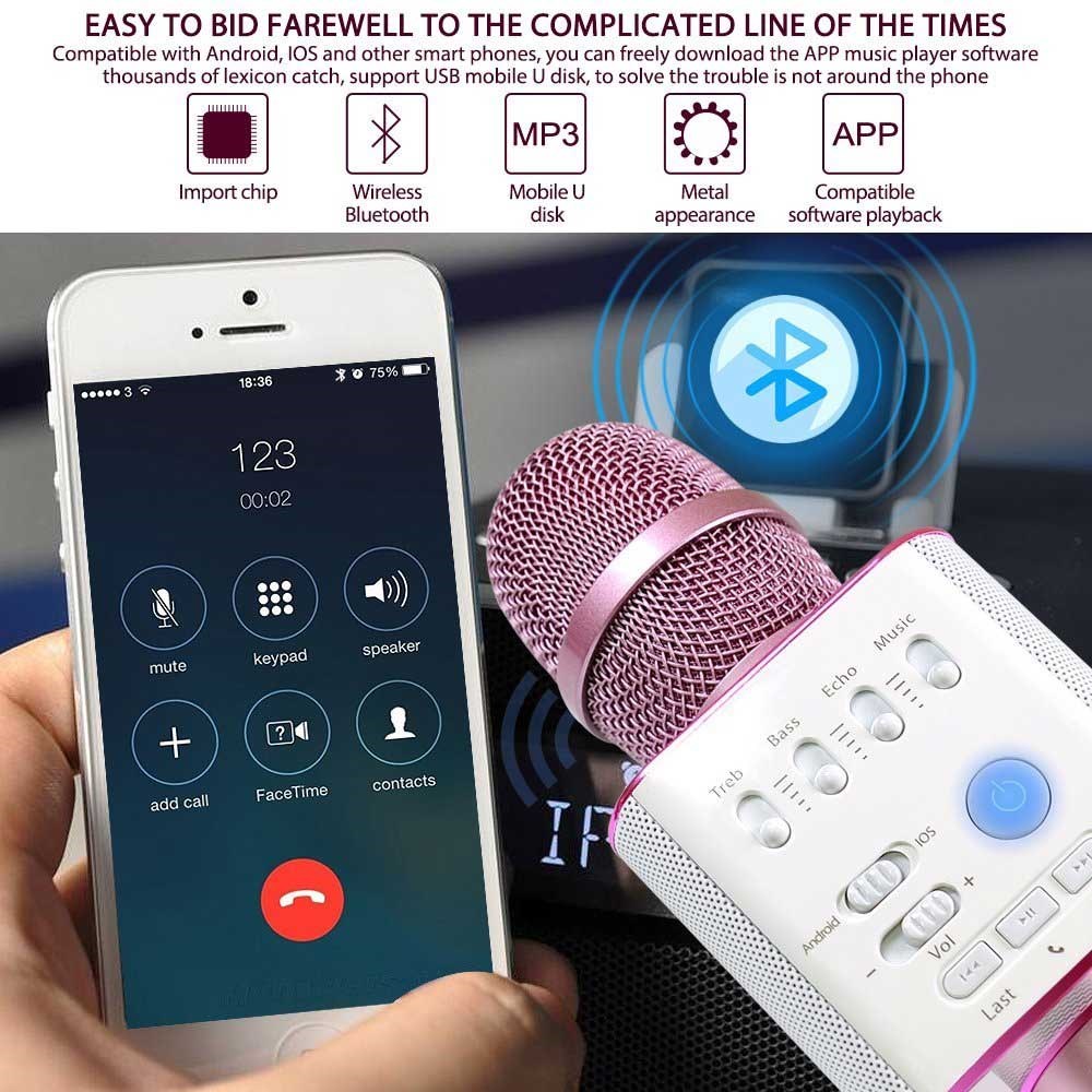 Q9 The microphone is of high quality in both sound and design. You mix the sound yourself with the many adjustment buttons and can easily switch between songs. Download music player App and connect via Bluetooth The microphone to your smartphone and you can sing karaoke to the lyrics of your phone.