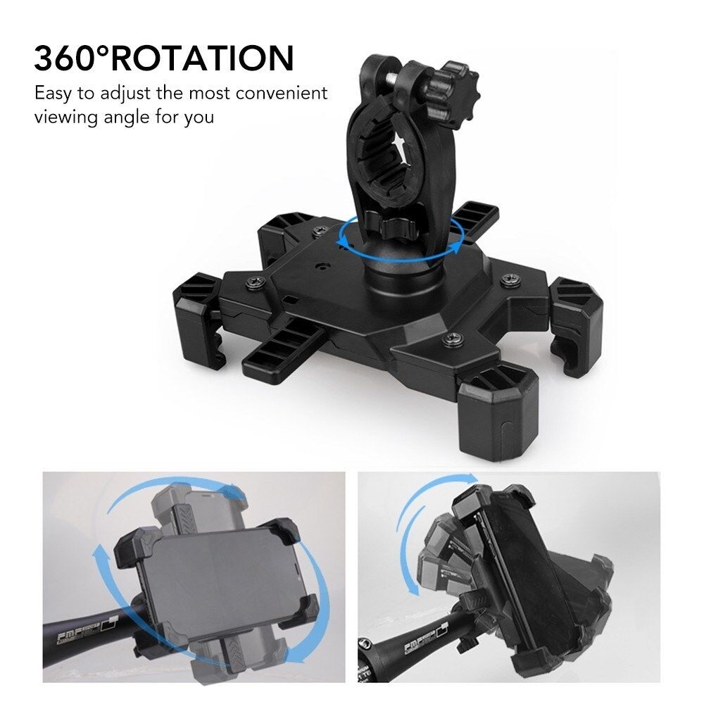 Quick Lock Bicycle Mobile Phone Holder 360° Rotation Adjustable Motorcycle Phone Mount - Black