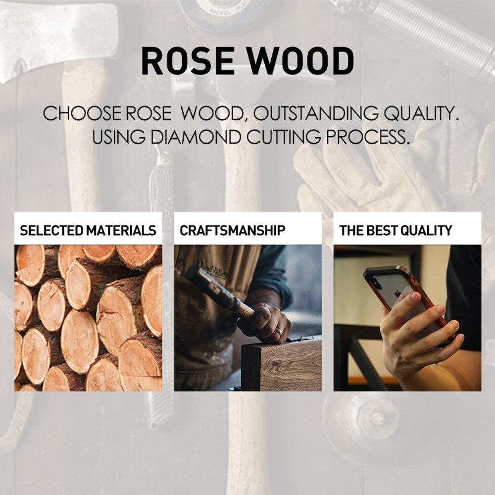 R-JUST Ultra Thin Hard Metal Aluminum Alloy Wooden Protect Bumper Frame Case for iPhone 13 Pro Max 6.7 inch