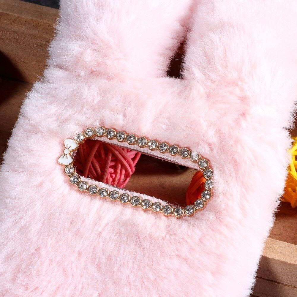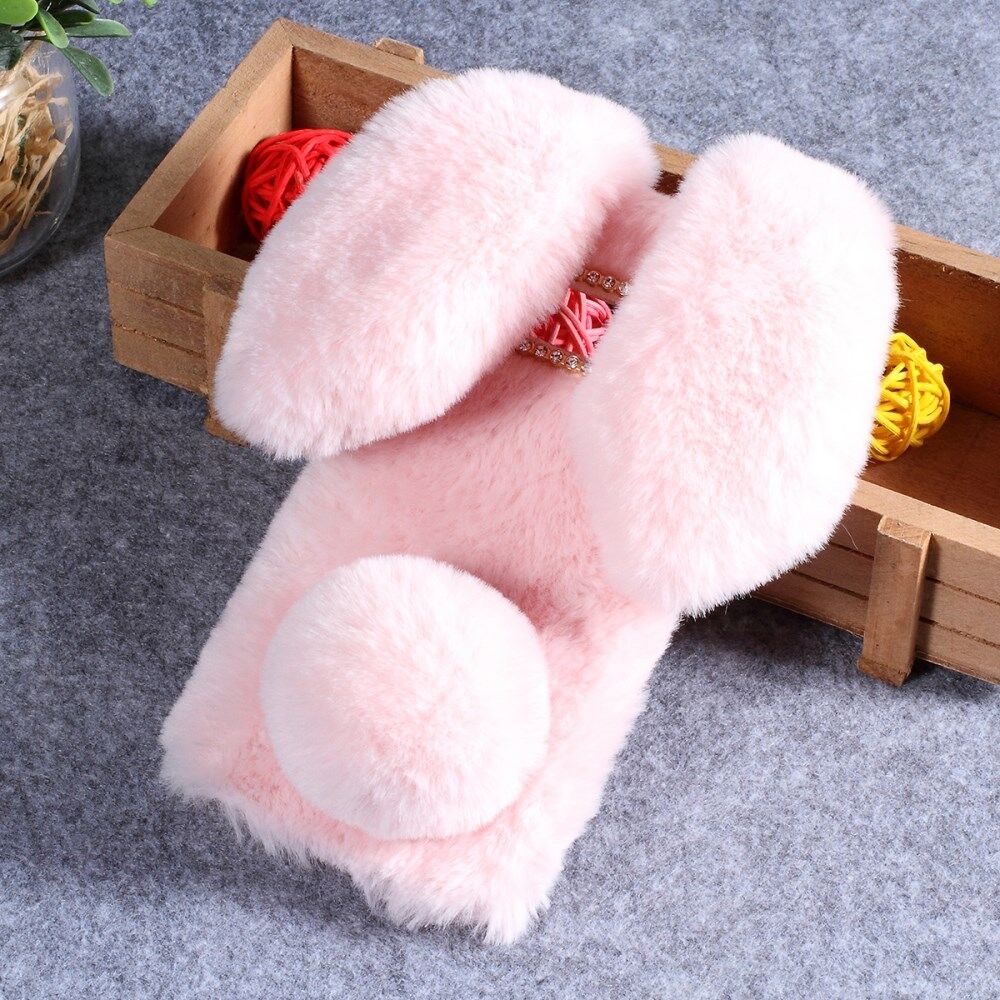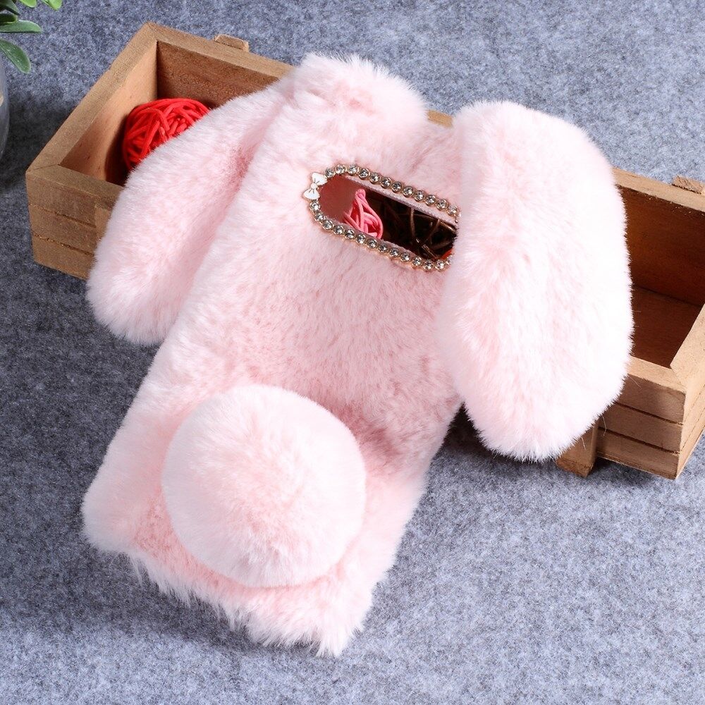 Rabbit Shape Fluffy Fur Coated Rhinestone TPU Case for Samsung Galaxy S10