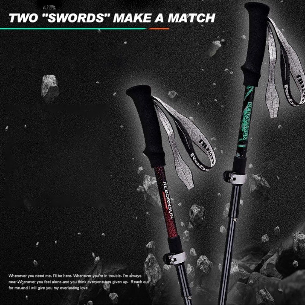 REBORNSUN RBZDGR1017 Carbon Fiber Mountain Trekking Poles Anti-shock Lightweight Foldable Walking Hiking Sticks