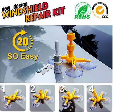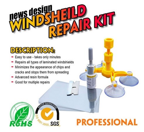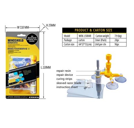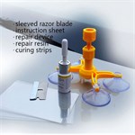 The kit contains special resin repair resin, repair tools, strips, razor blades and detailed instruction guide.