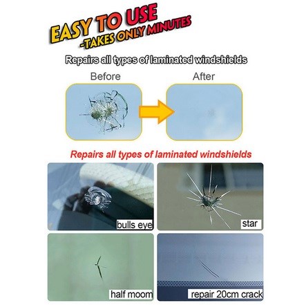 With this super-practical repair kit, you can repair damage to the windshield of your car after strokes and other damage. The specially developed transparent resin penetrates the car window and hides and stops the damage.