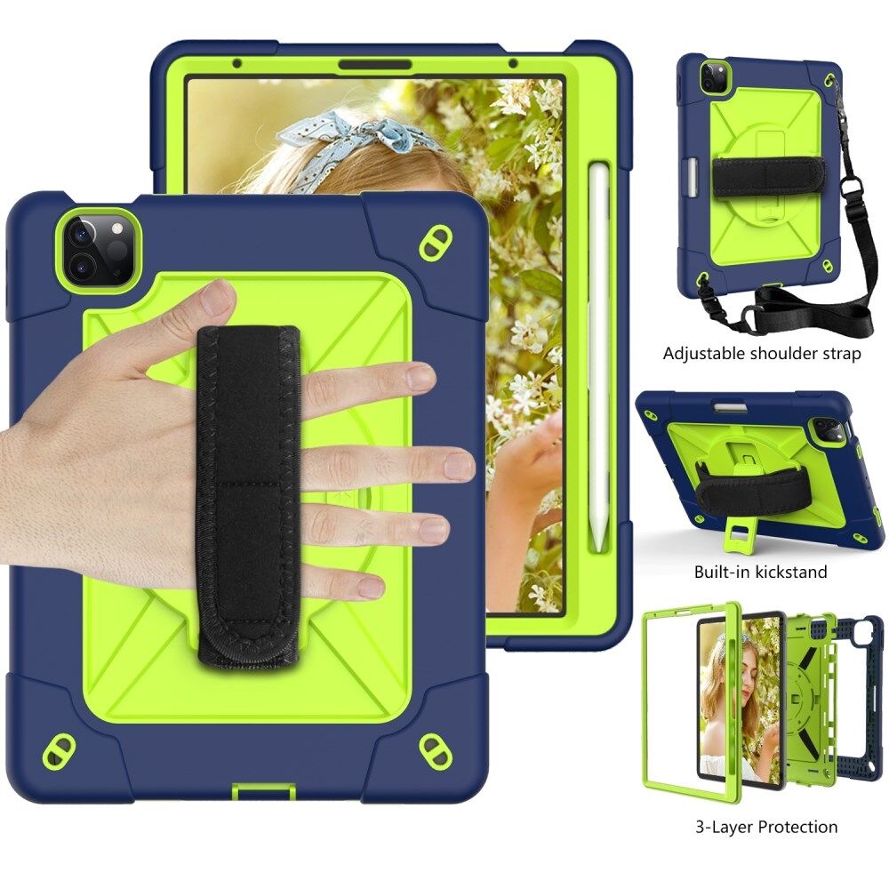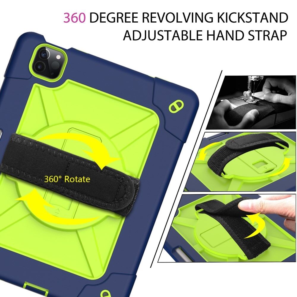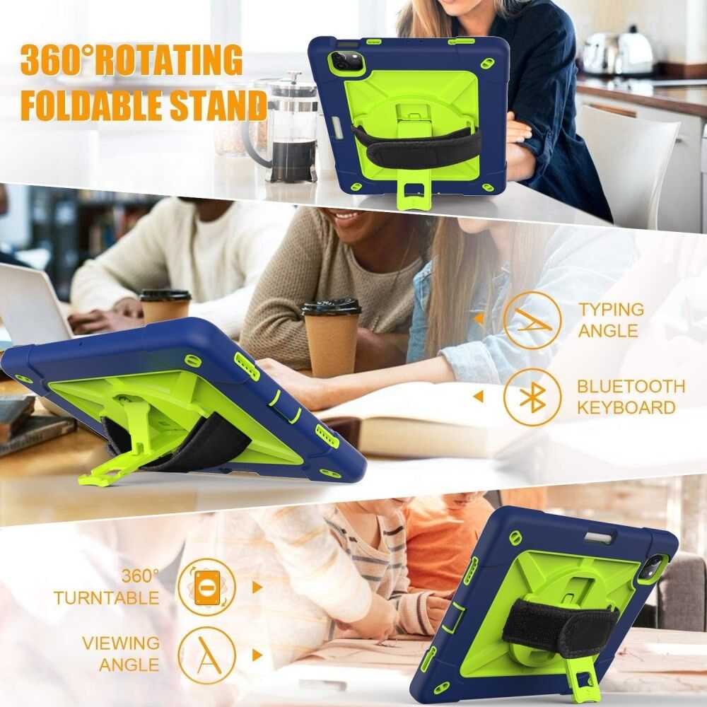 Rotation Kickstand Shock Proof TPU + PC + Silicone Combo Cover for iPad Air (2020) Case - Navy Blue/Cyan