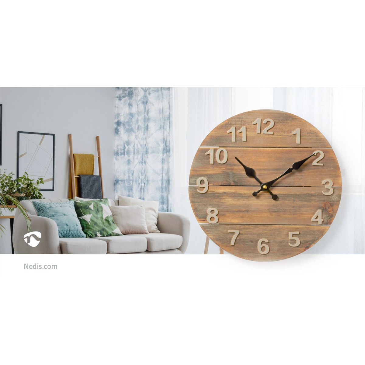 This eye-catching Nedis® wall clock is made of real wood to give the perfect finish to the room.