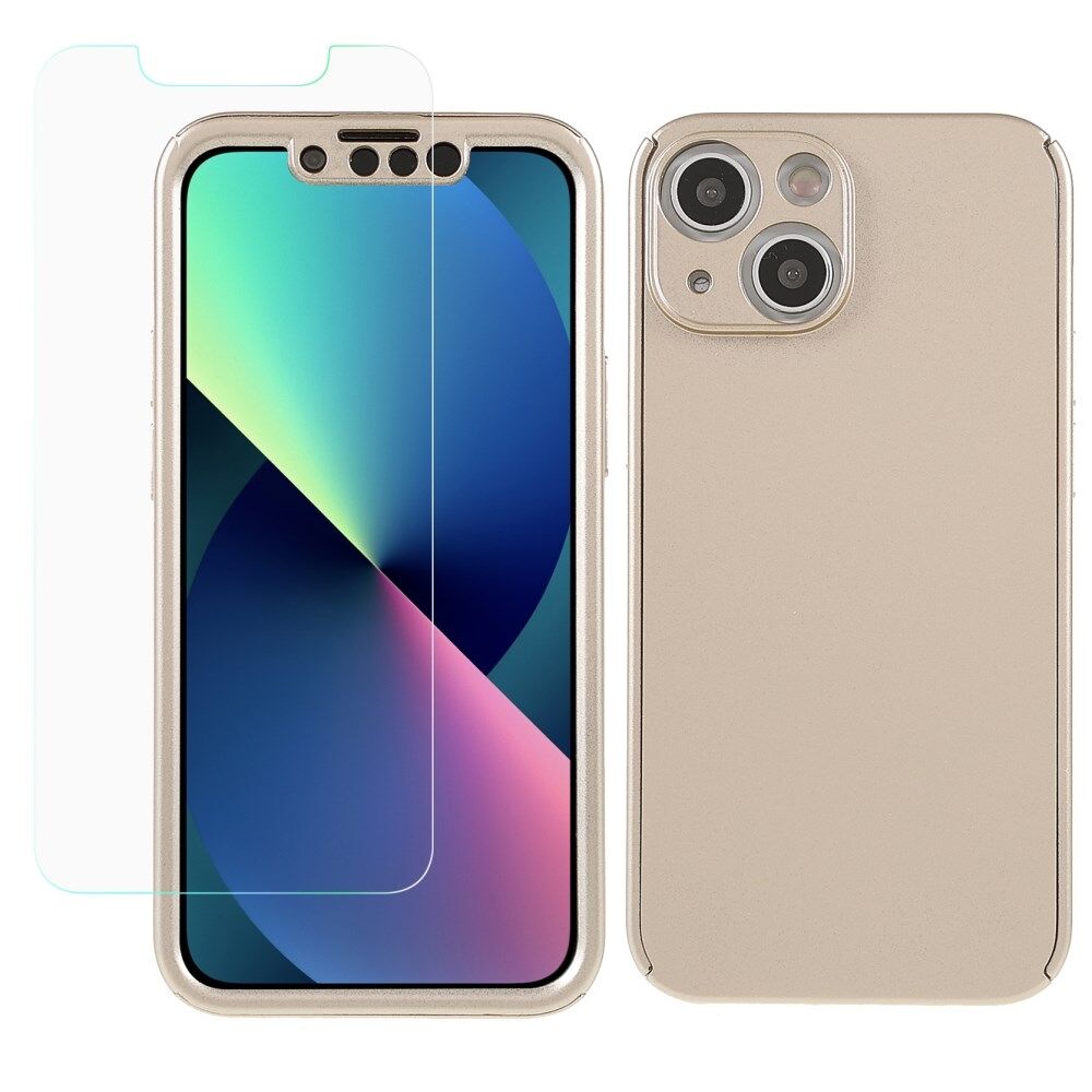 Rubberized Surface Precise Cutouts Light Slim Detachable 2-in-1 Hard PC Case with Screen Protector for iPhone 13 6.1 inch - Gold