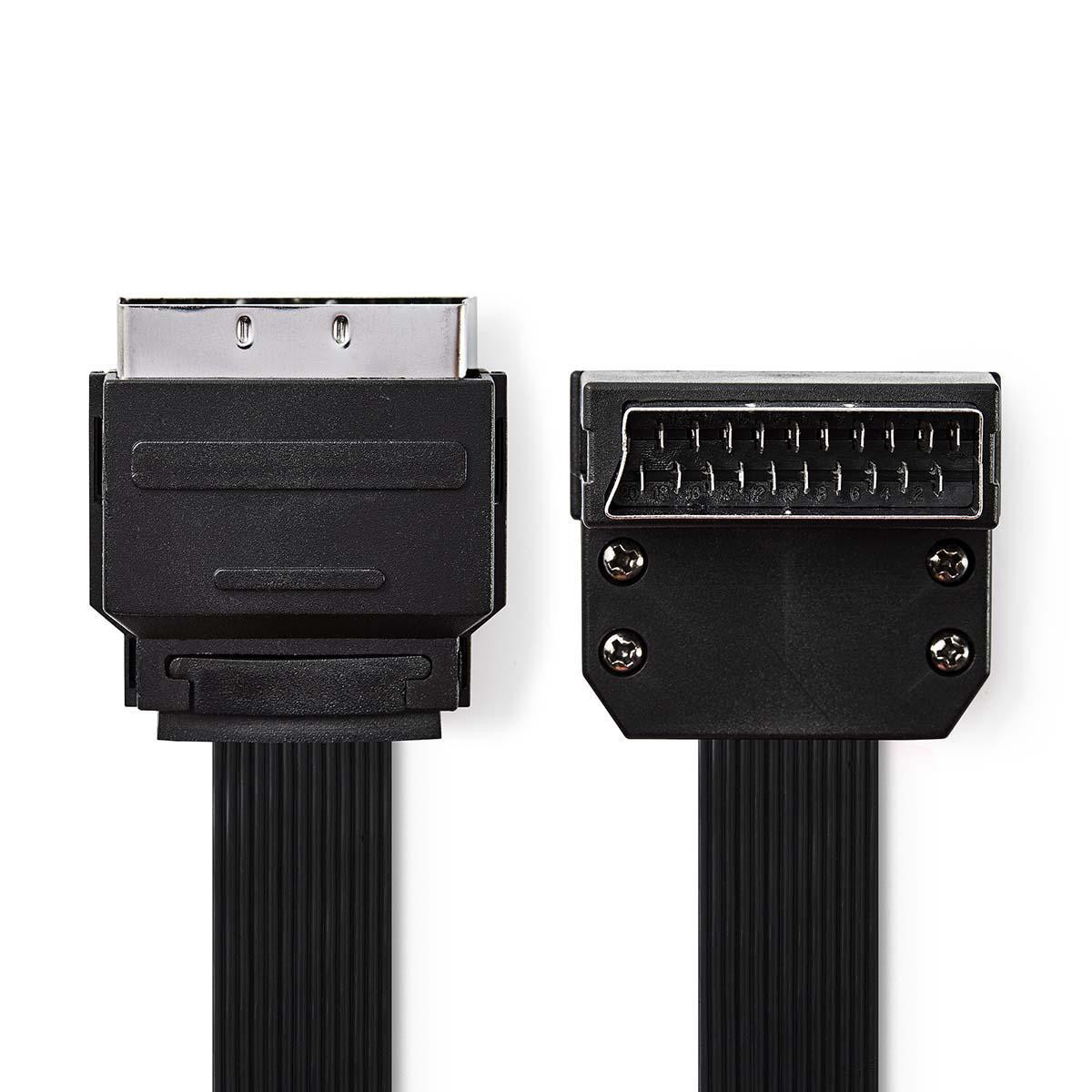 SCART flat cable | SCART connector | SCART male connector, 90 ° angled | 2.0 m | Black
