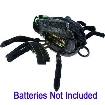 Hang the ring on the wall and turn on the switch. When the sound is produced, the spider will react and fall down suddenly. After that, the spider will climb up again.