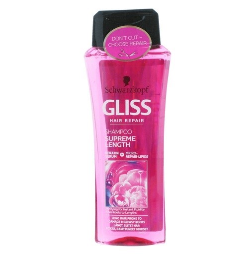 This shampoo is part of the Gliss Supreme Length series and contains keratin serum.