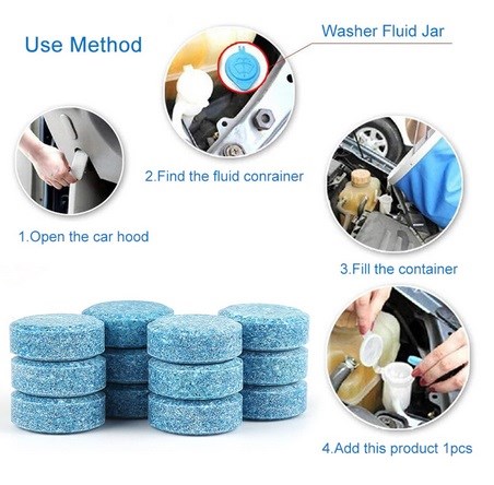 Effective cleaning tabs for the car's sprinkler system. Effectively clean and remove film on glass, insects, dust, asphalt, leaves, fingerprints, etc.