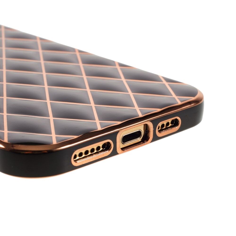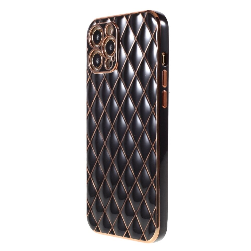 Shockproof Electroplating Rhombus Pattern TPU Phone Case for iPhone 12 Pro - Black