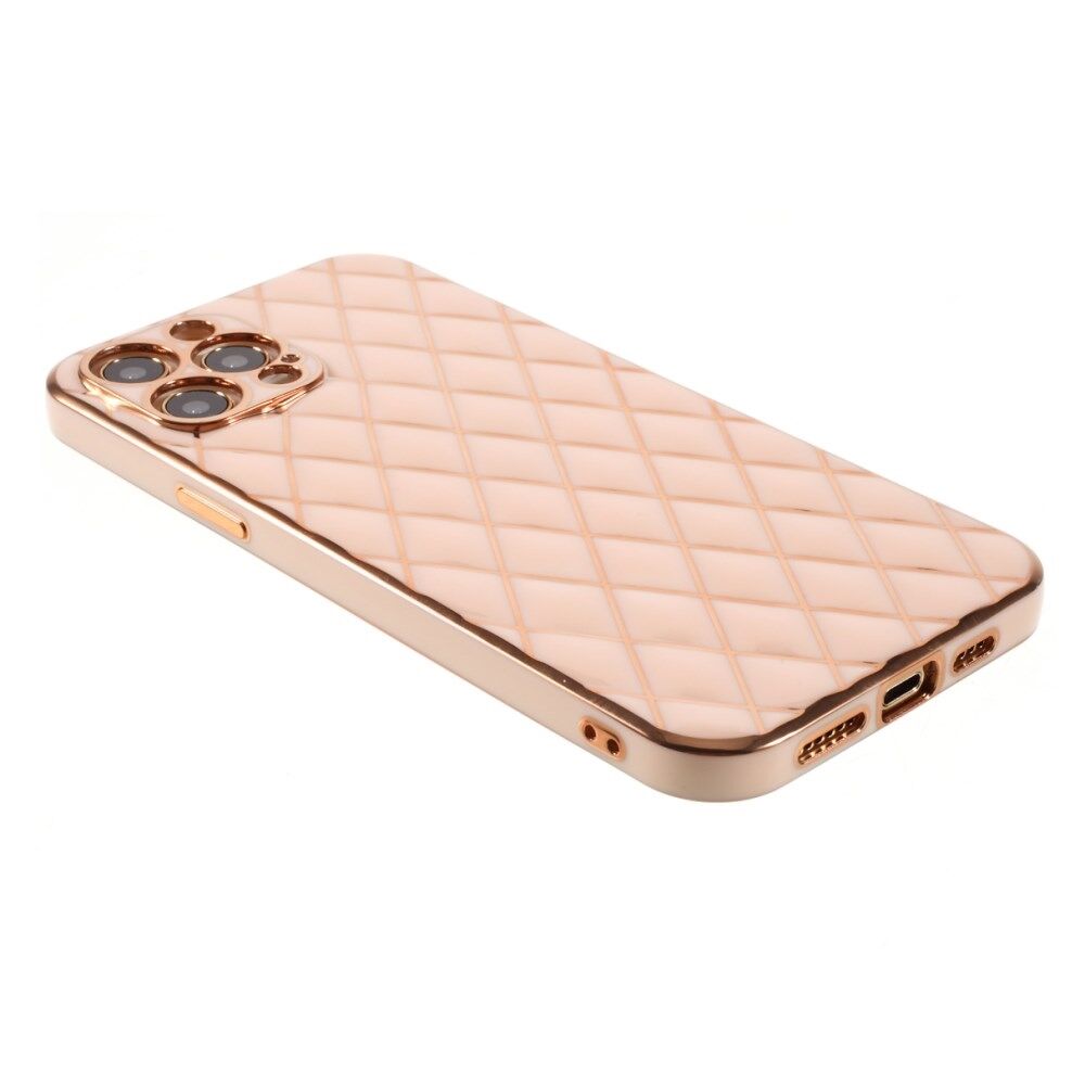Shockproof Electroplating Rhombus Pattern TPU Phone Case for iPhone 12 Pro - Rose Gold