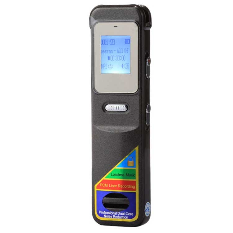 Digital Dictaphone with 8 GB memory, LCD Display, speaker and supporting SD Card.