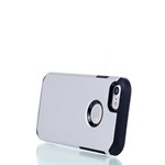 Simple plastic and silicone cover with hole for Apple logo.