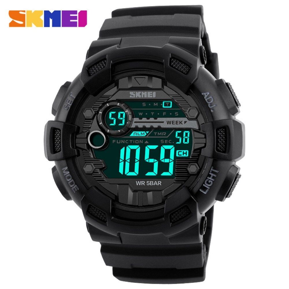 SKMEI Double Time Men Digital Watch [50m Waterproof] [Back Light] [Chronograph] - Black