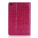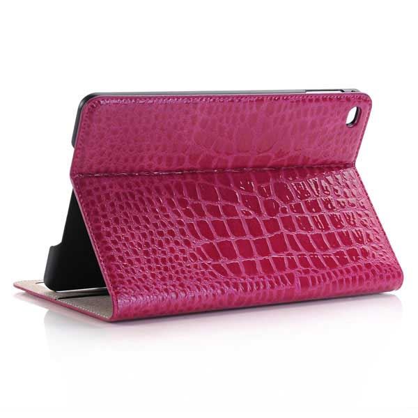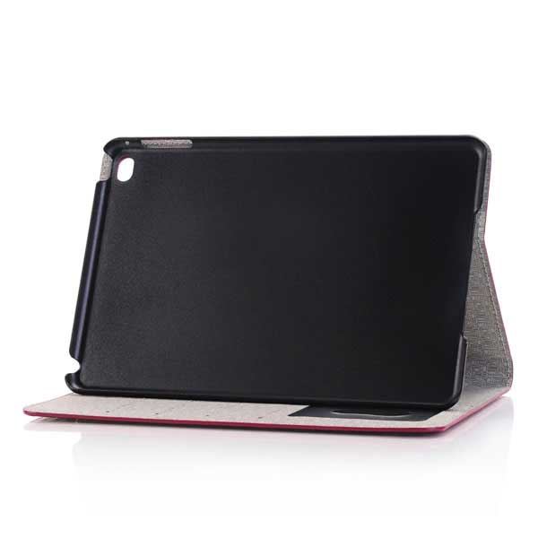 The case is made of imitation leather in a snakeskin look, as well as a cover that holds your iPad, so it stays where it should be. The cover is made of hard plastic and is therefore extremely durable.