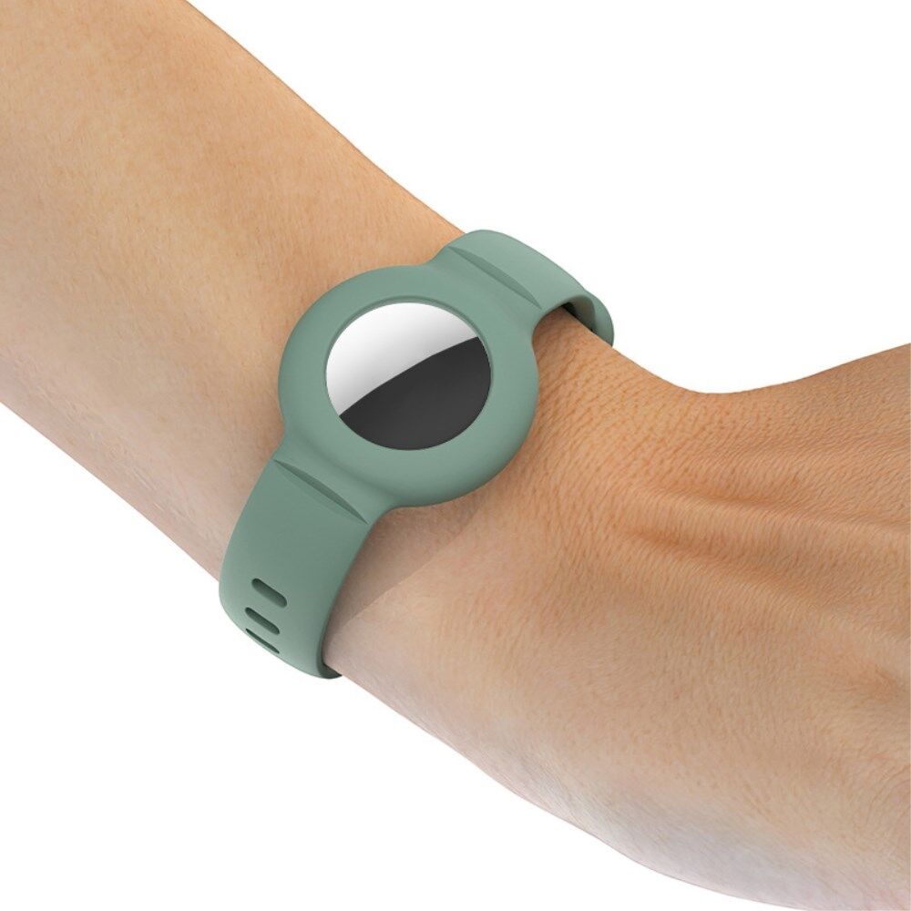 Soft Silicone Wristband Waterproof Protective Case Cover Holder Bracelet for Apple AirTag - Blackish Green