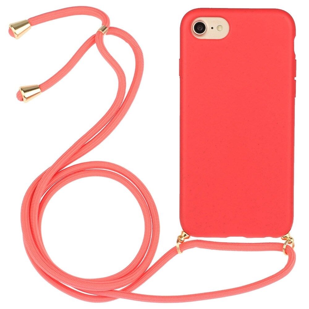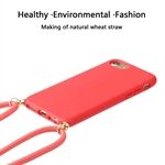 Soft Surface Phone Cover for iPhone 7 / 8 / SE (2020)/SE (2022) 4.7 inch, Wheat Straw + Flexible TPU Case with Lanyard Strap - Red