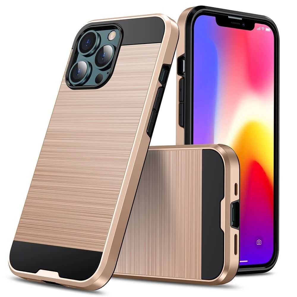 Soft TPU Hard PC Brushed Anti-Fingerprint Full-Body Protective Phone Case Cover for iPhone 13 Pro 6.1 inch - Gold