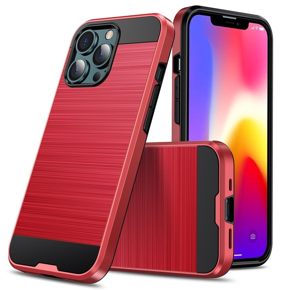 Soft TPU Hard PC Brushed Anti-Fingerprint Full-Body Protective Phone Case Cover for iPhone 13 Pro 6.1 inch - Red