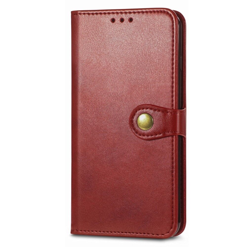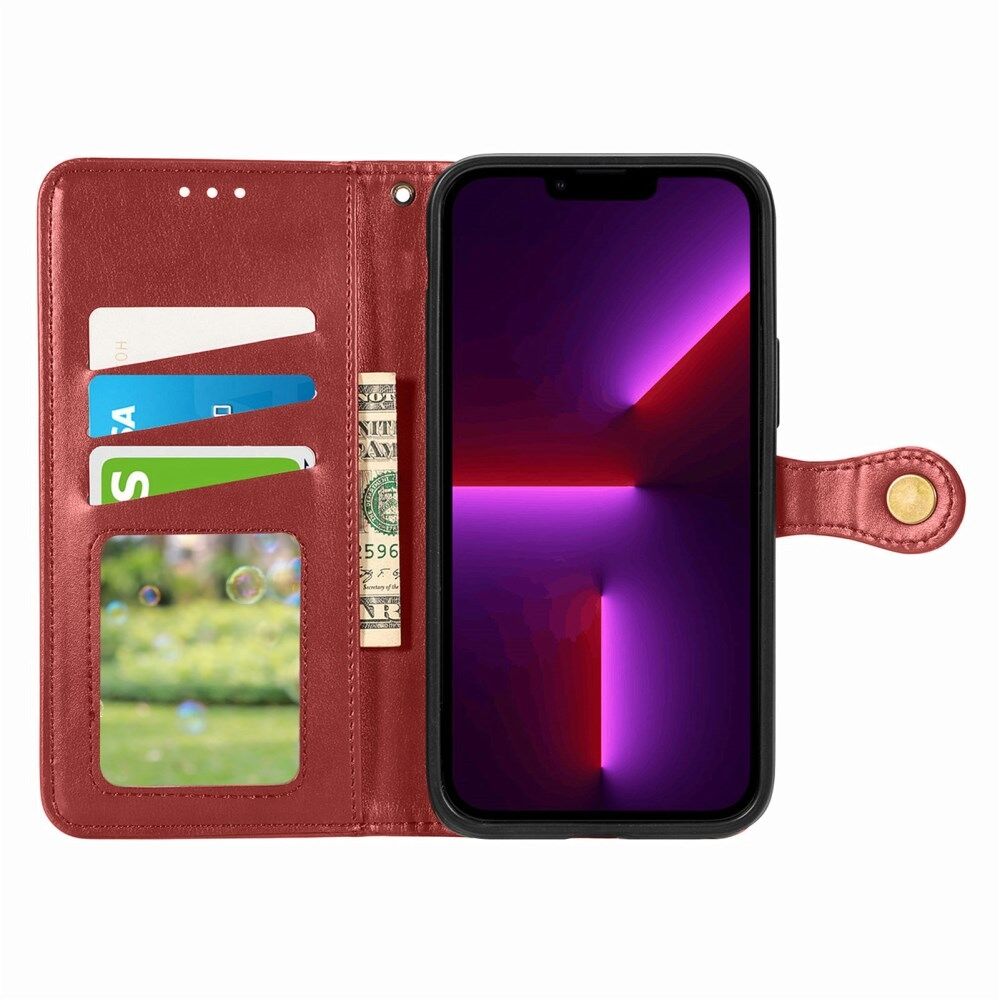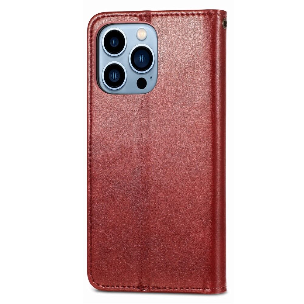 Solid Color Folio Flip Leather Phone Stand Case Wallet Cover for iPhone 13 Pro 6.1 inch - Red