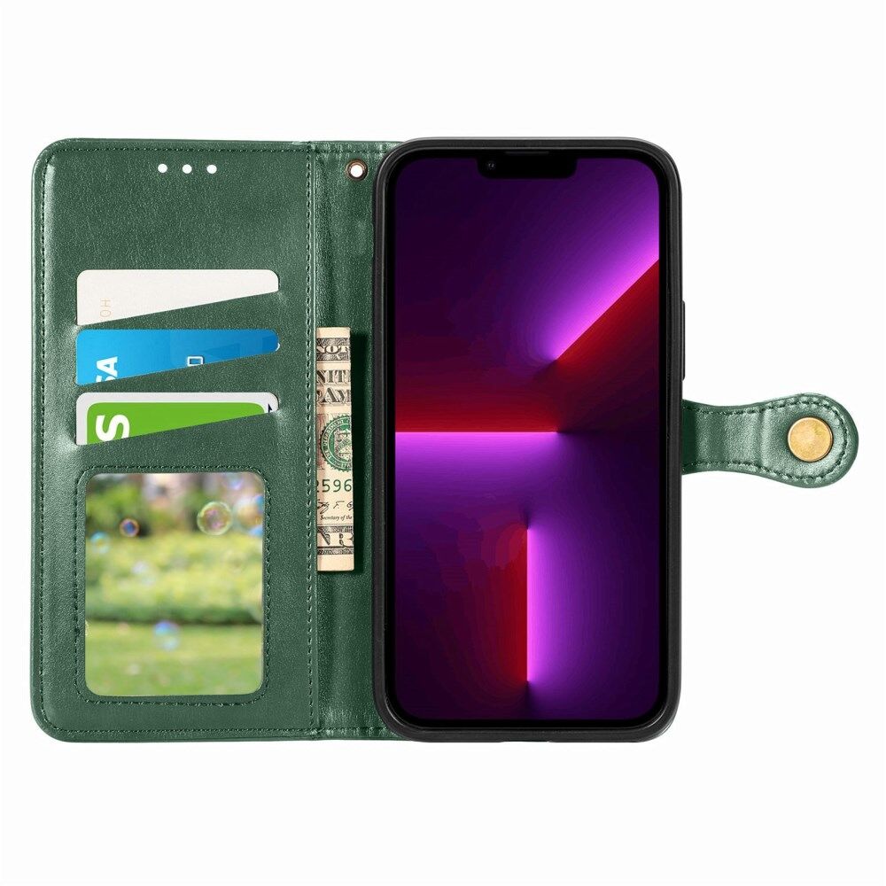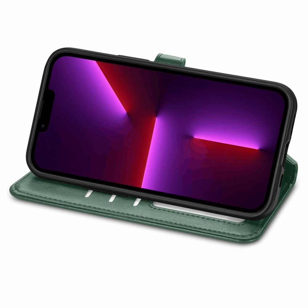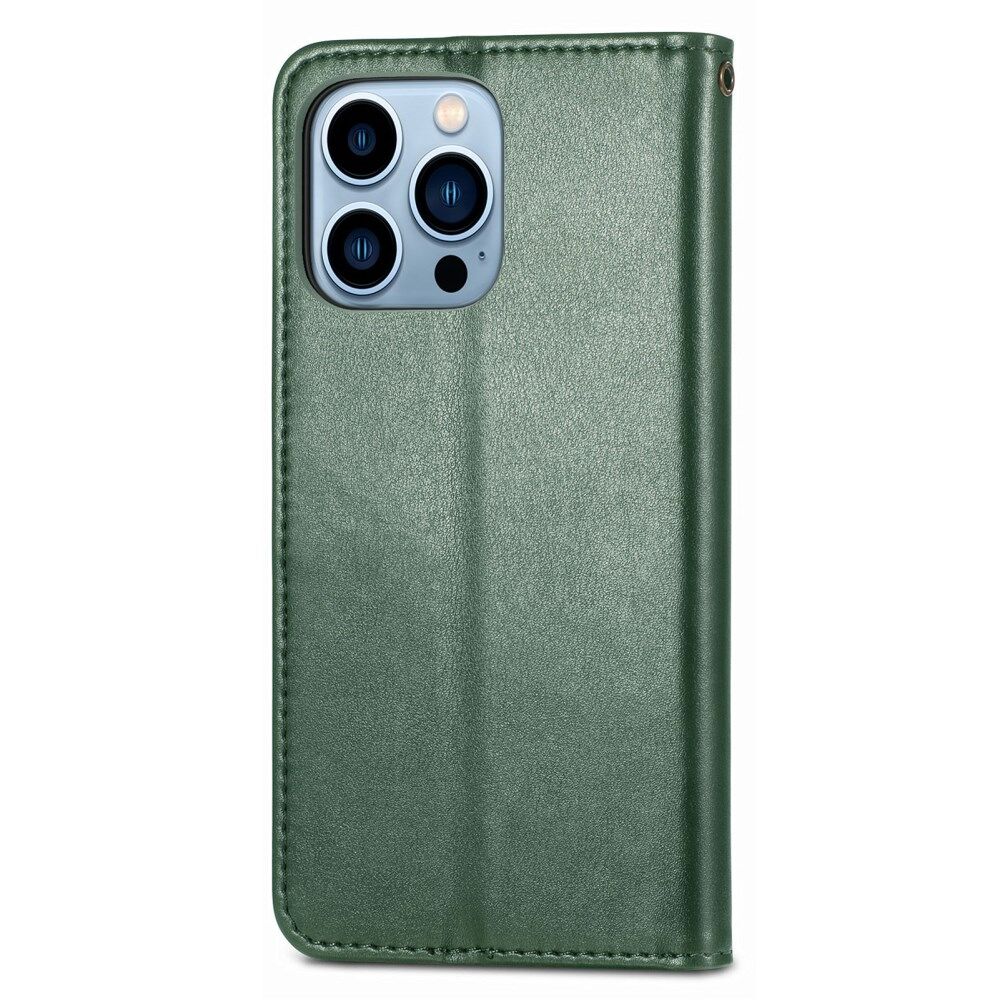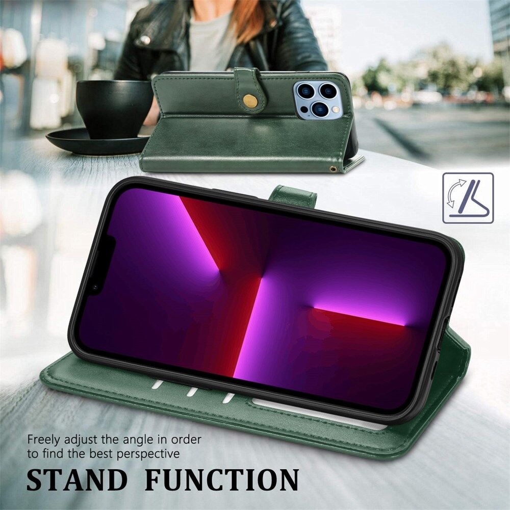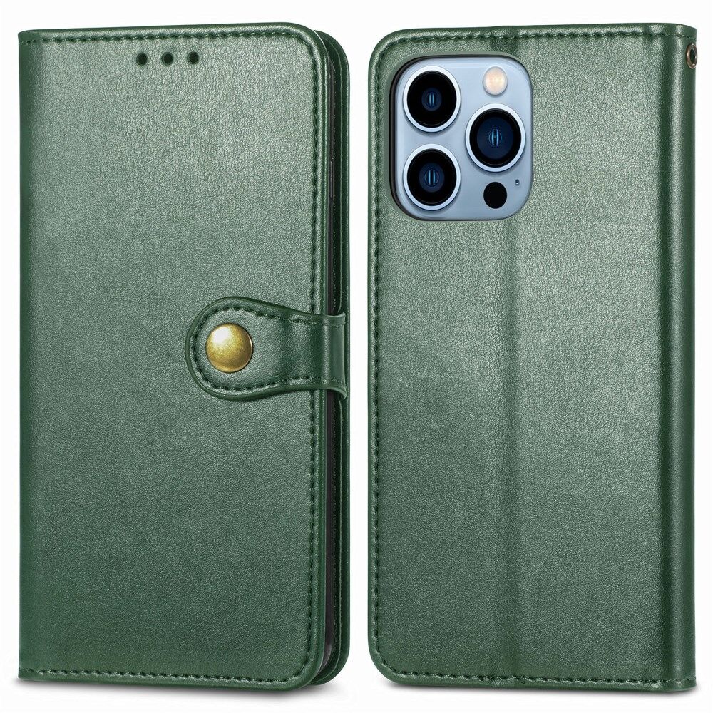 Solid Color Folio Flip Leather Phone Stand Case Wallet Cover for iPhone 13 Pro 6.1 inch - Green