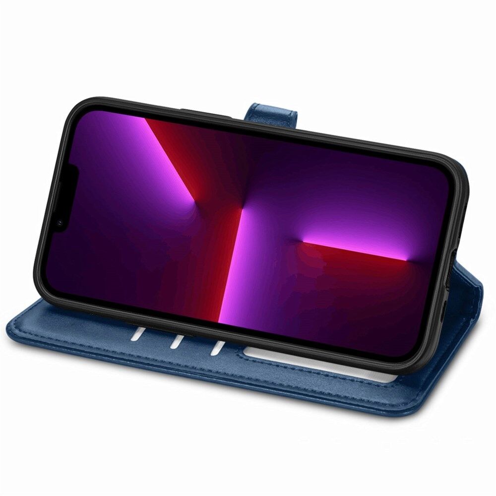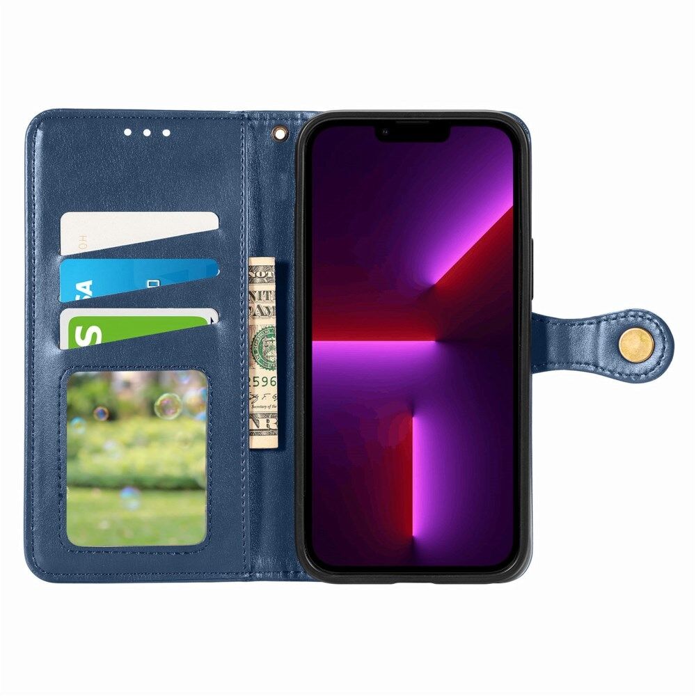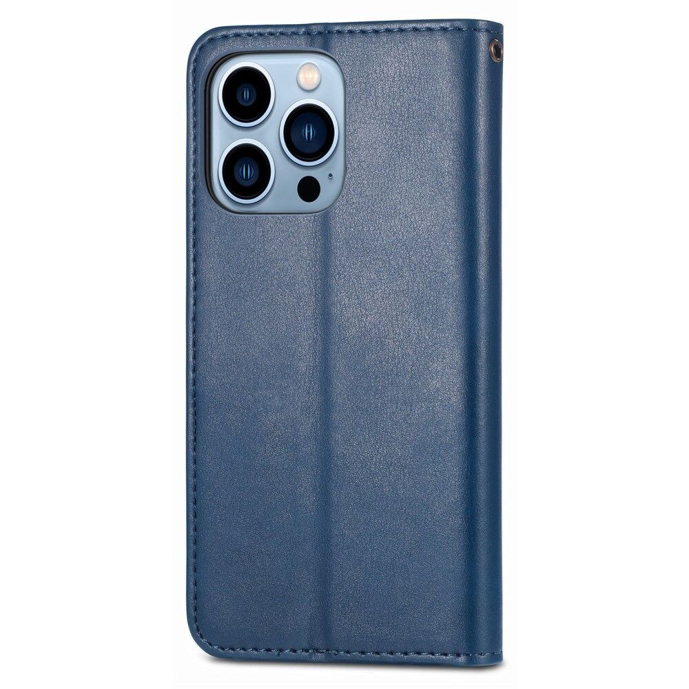 Solid Color Folio Flip Leather Phone Stand Case Wallet Cover for iPhone 13 Pro 6.1 inch - Blue