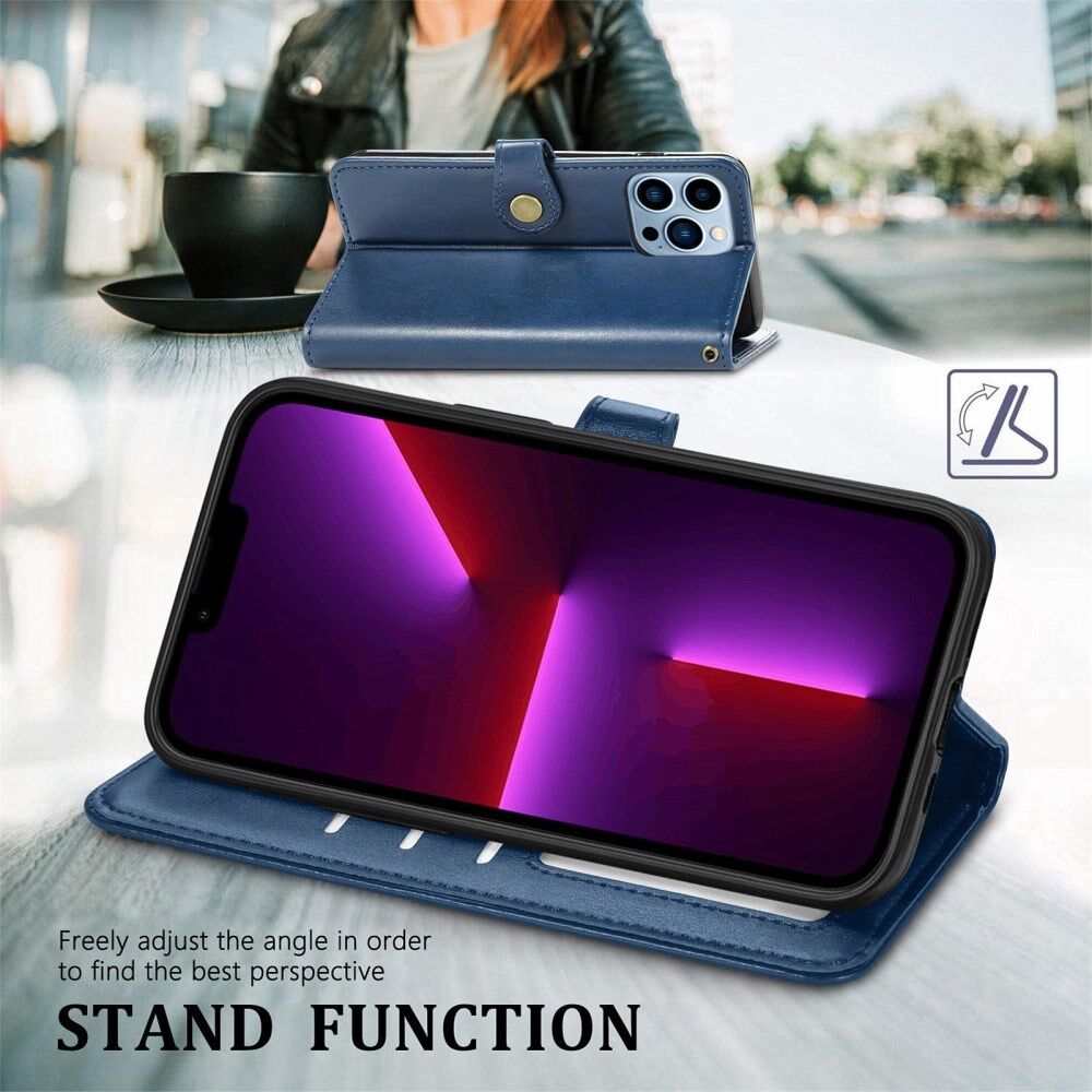 Solid Color Folio Flip Leather Phone Stand Case Wallet Cover for iPhone 13 Pro 6.1 inch