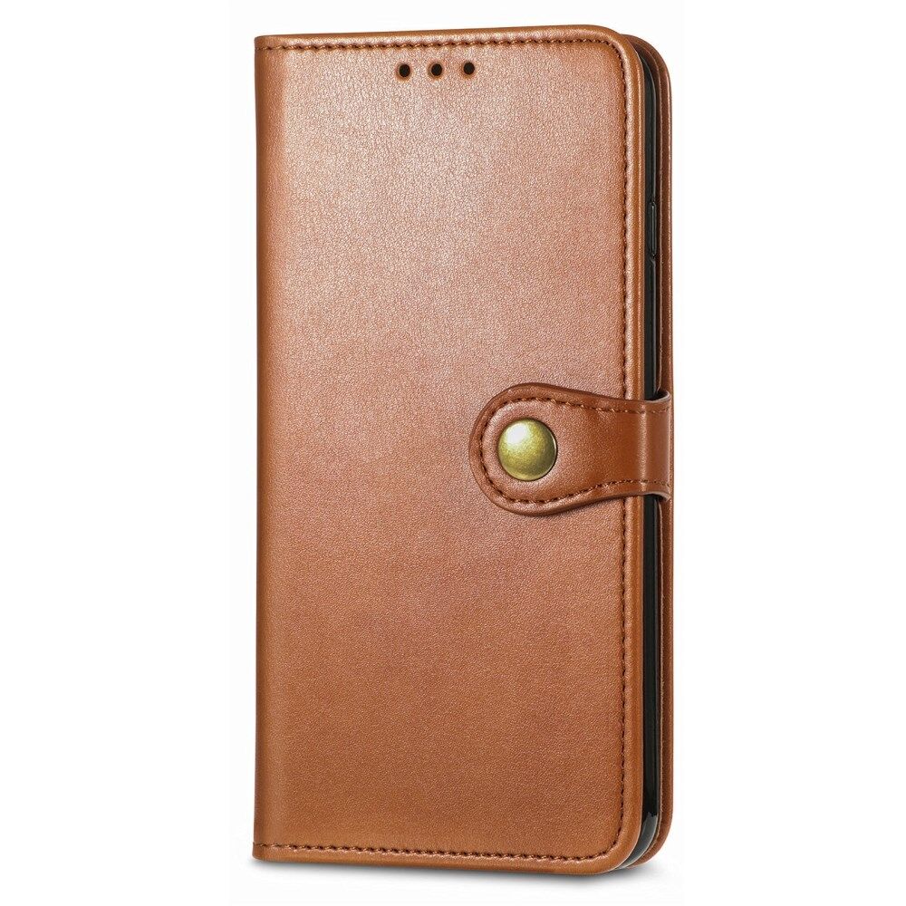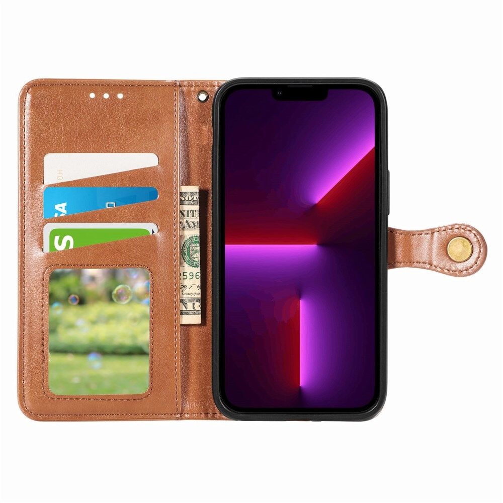 Solid Color Folio Flip Leather Phone Stand Case Wallet Cover for iPhone 13 Pro 6.1 inch - Brown