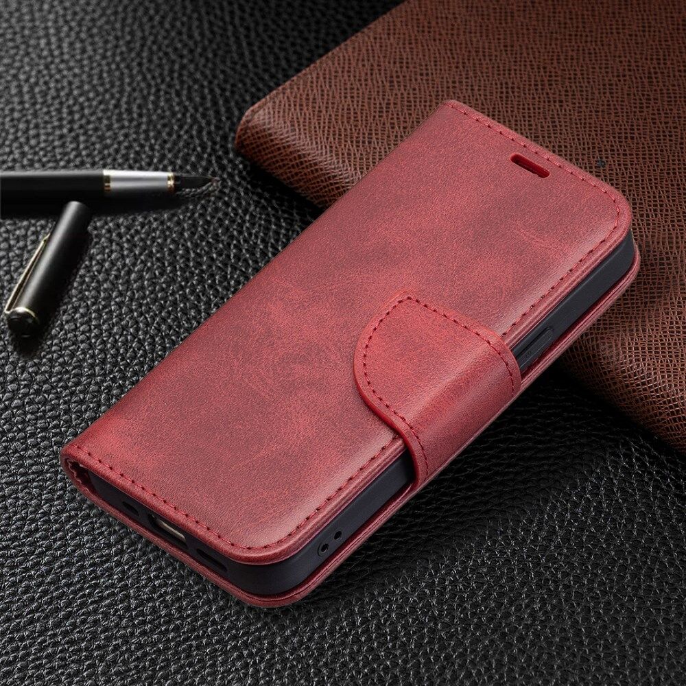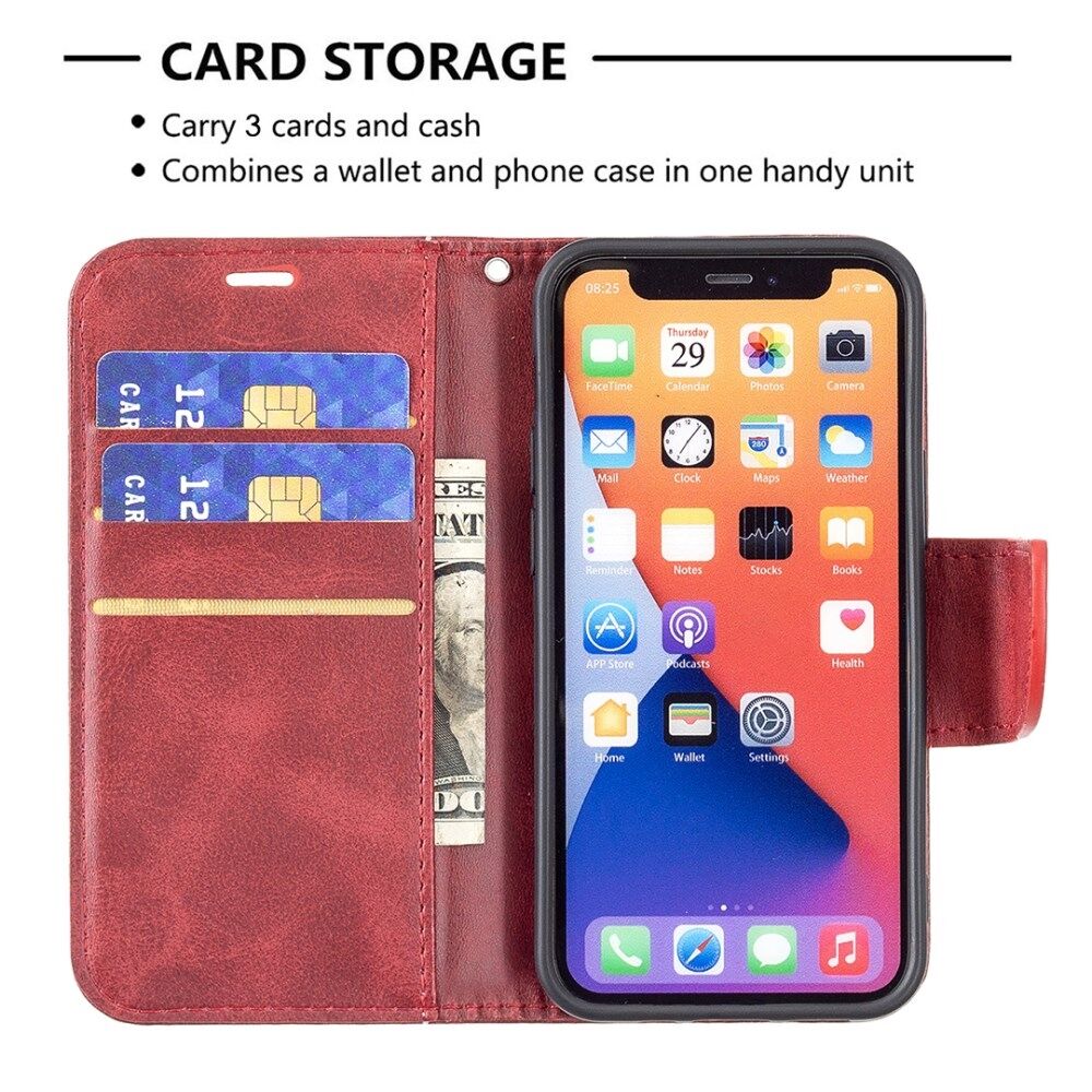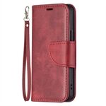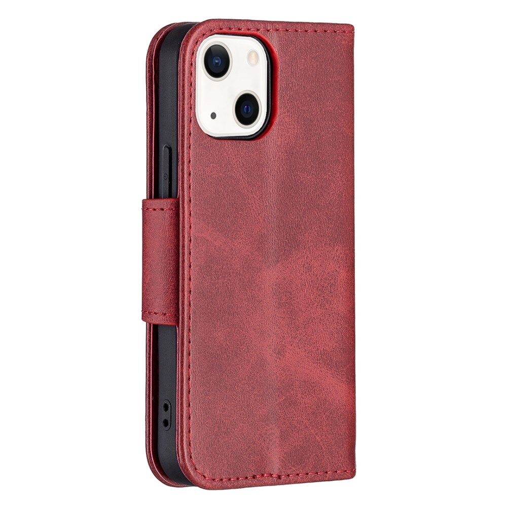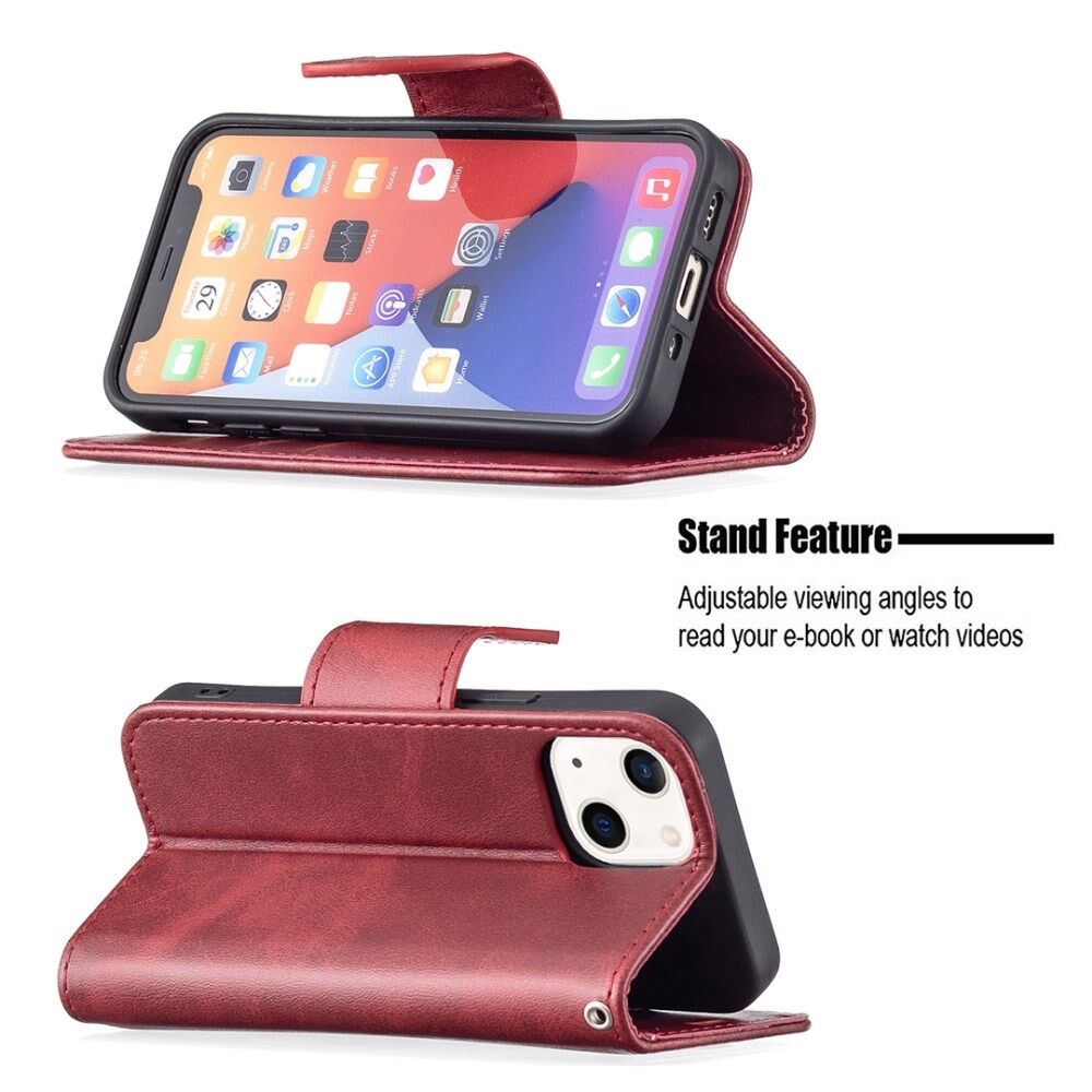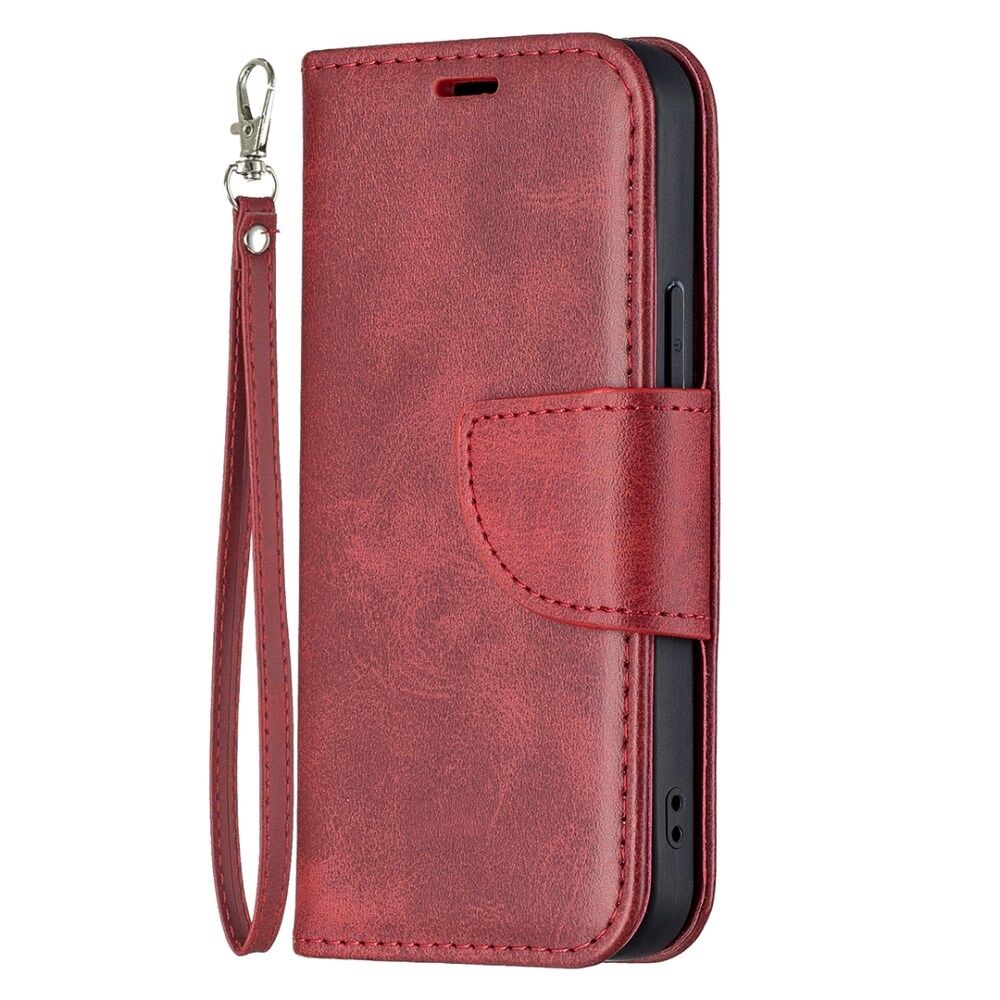 Solid Color Leather Wallet Case Phone Shell with Strap for iPhone 13 mini 5.4 inch - Red