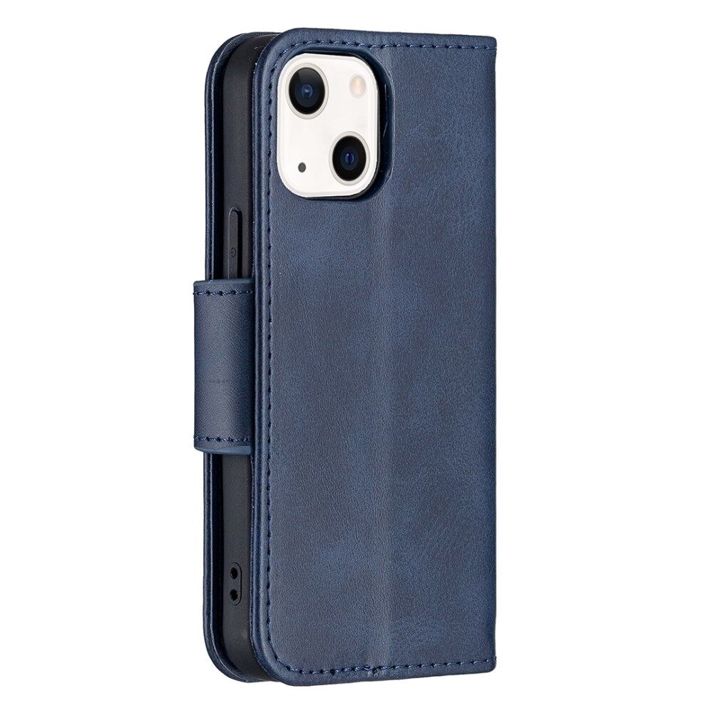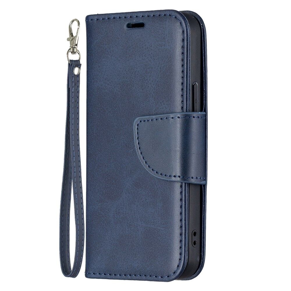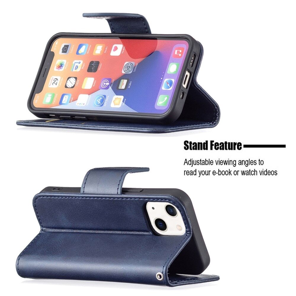 Solid Color Leather Wallet Case Phone Shell with Strap for iPhone 13 mini 5.4 inch - Blue