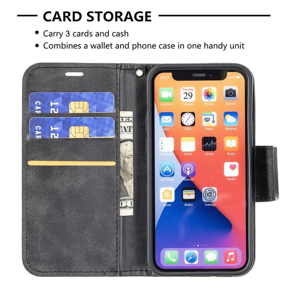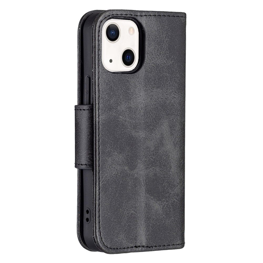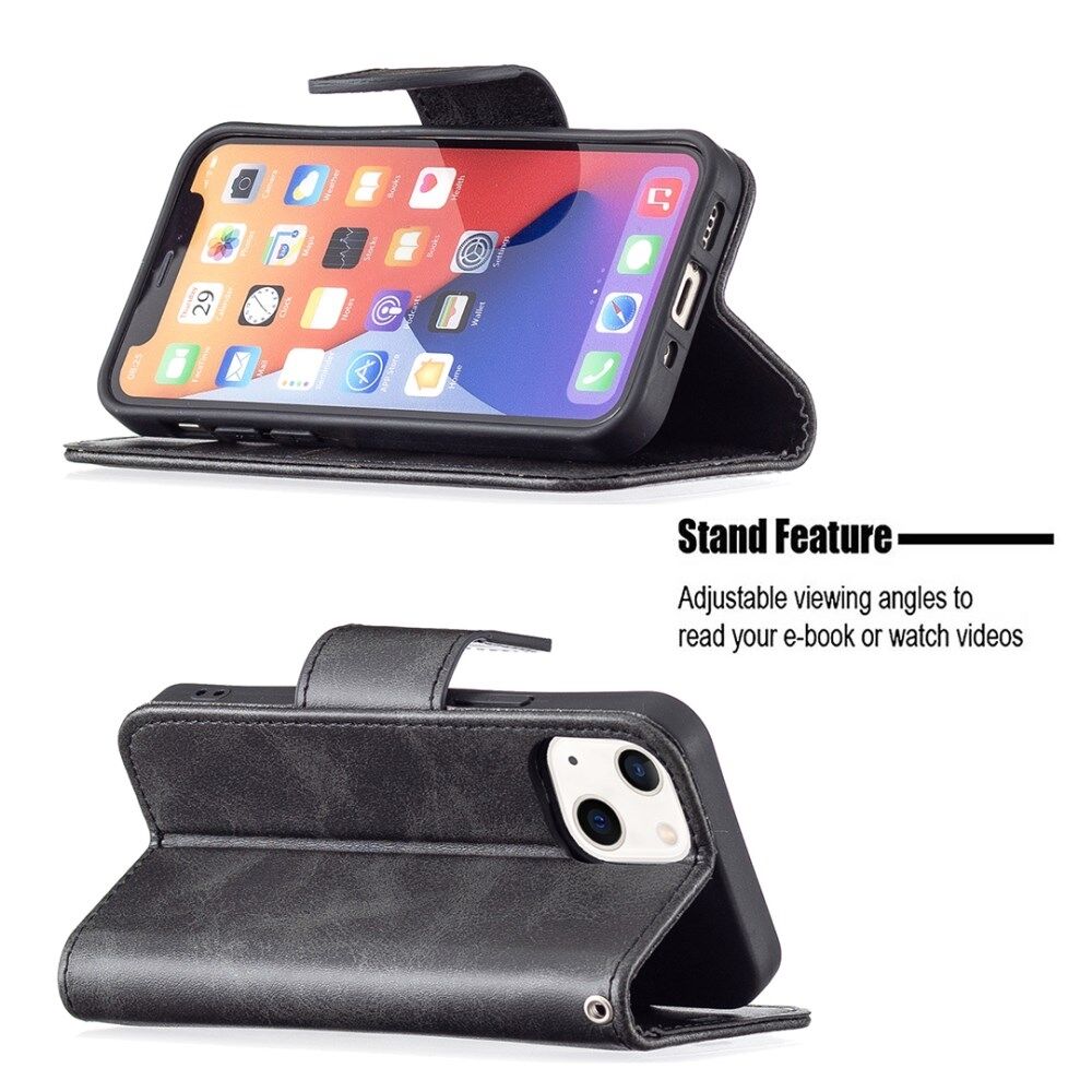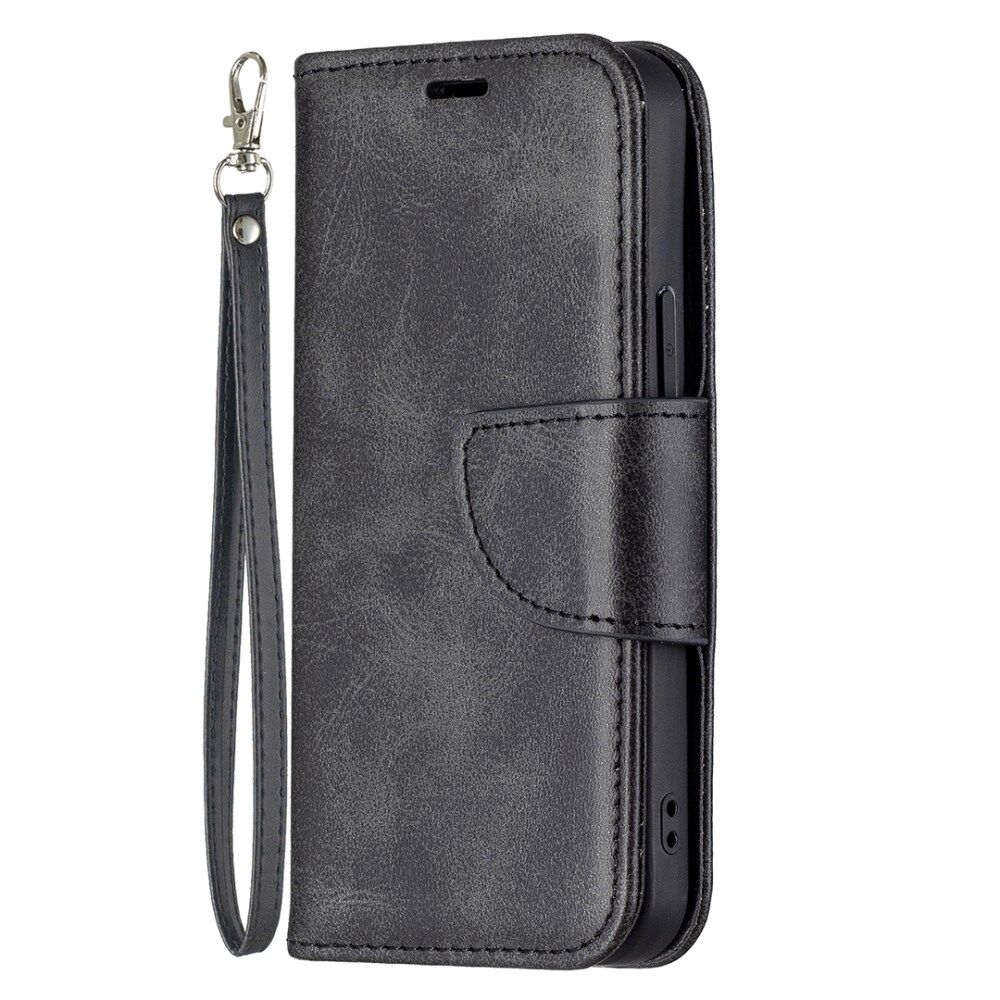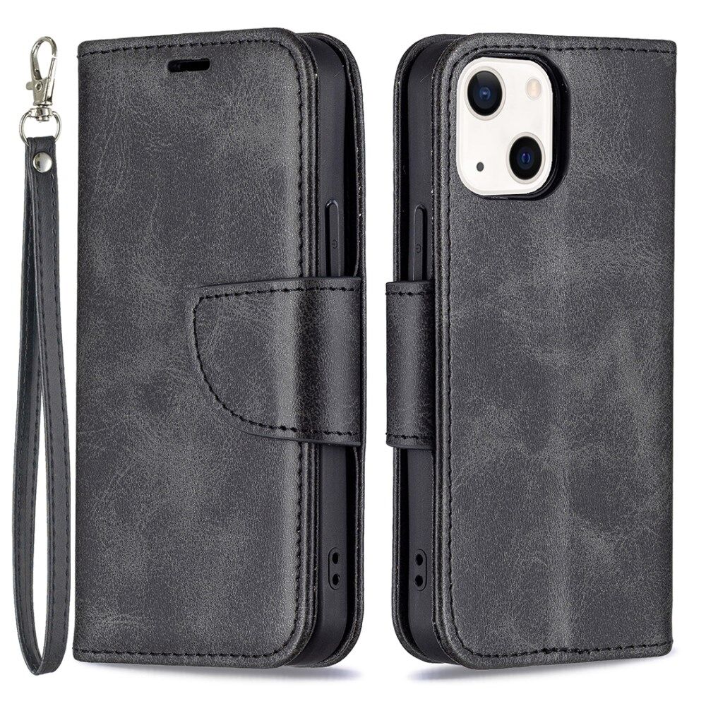 Solid Color Leather Wallet Case Phone Shell with Strap for iPhone 13 mini 5.4 inch - Black