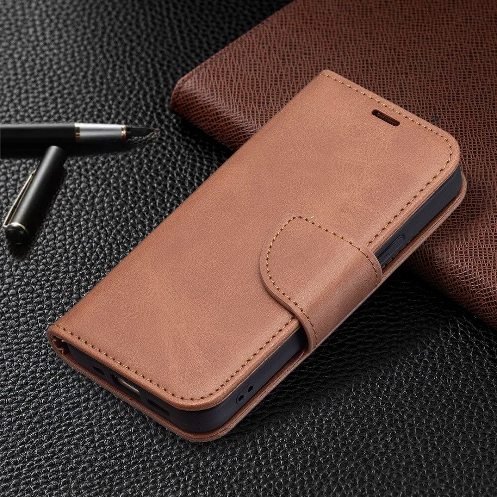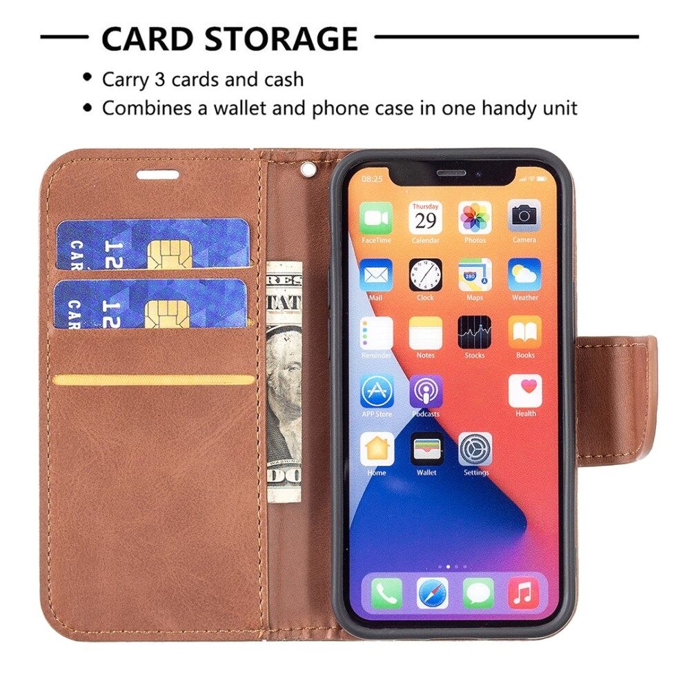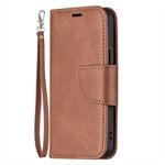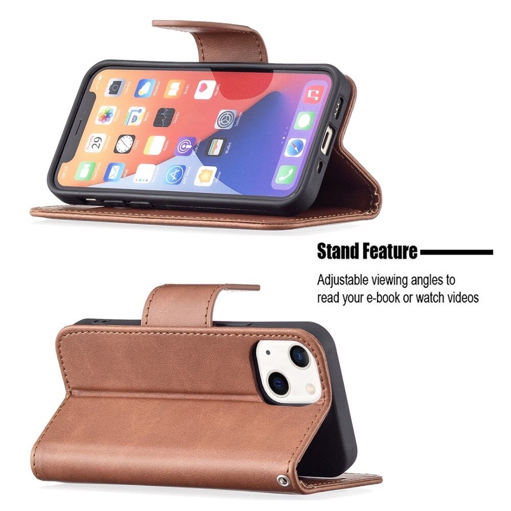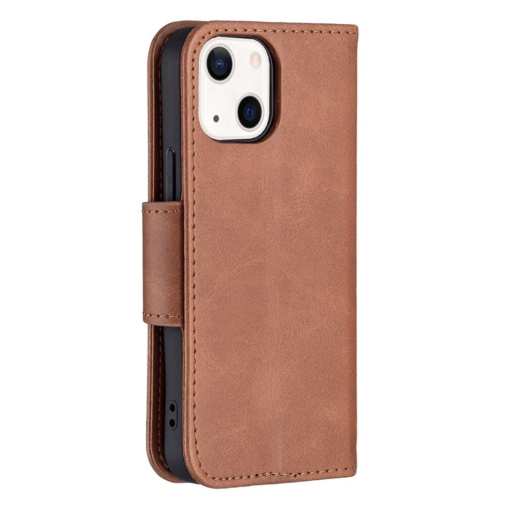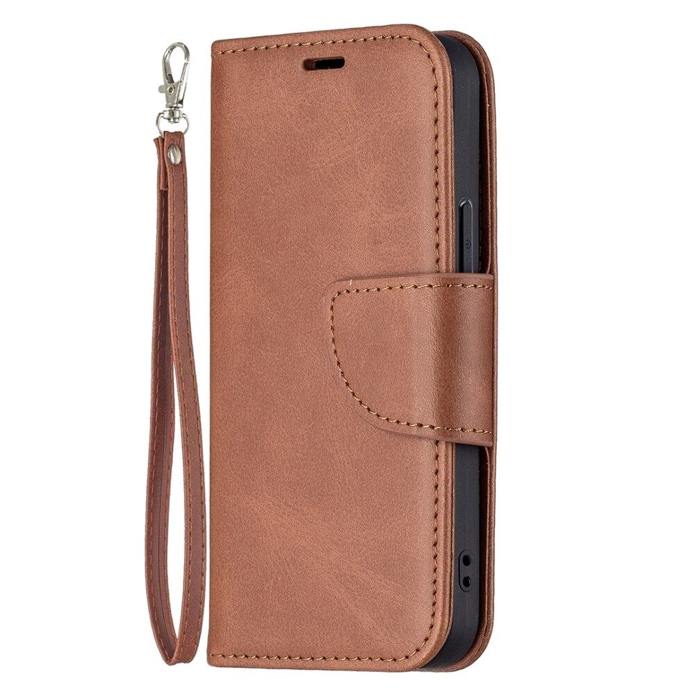 Solid Color Leather Wallet Case Phone Shell with Strap for iPhone 13 mini 5.4 inch - Brown