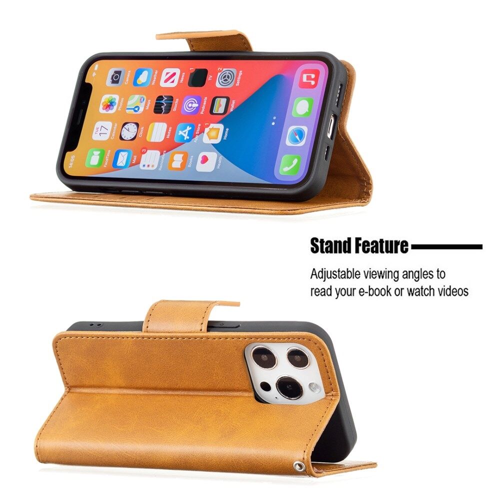 Solid Color PU Leather Wallet Cell Phone Case Shell with Stand for iPhone 13 Pro