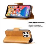Solid Color PU Leather Wallet Cell Phone Case Shell with Stand for iPhone 13 Pro - Yellow