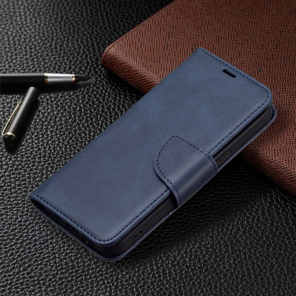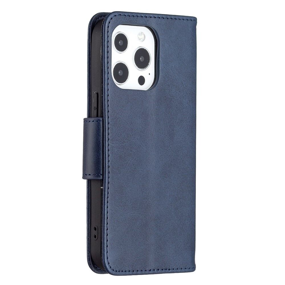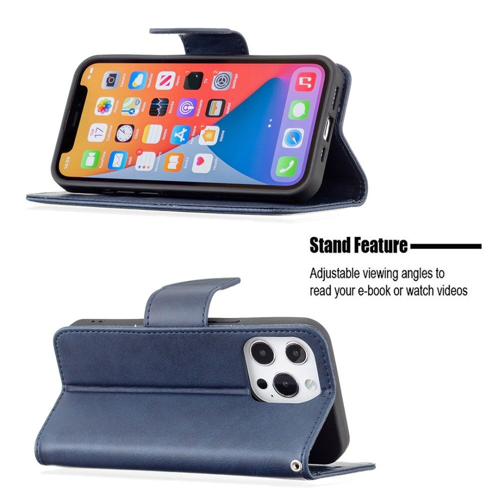 Solid Color PU Leather Wallet Cell Phone Case Shell with Stand for iPhone 13 Pro - Blue