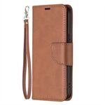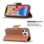 Solid Color PU Leather Wallet Cell Phone Case Shell with Stand for iPhone 13 Pro - Brown