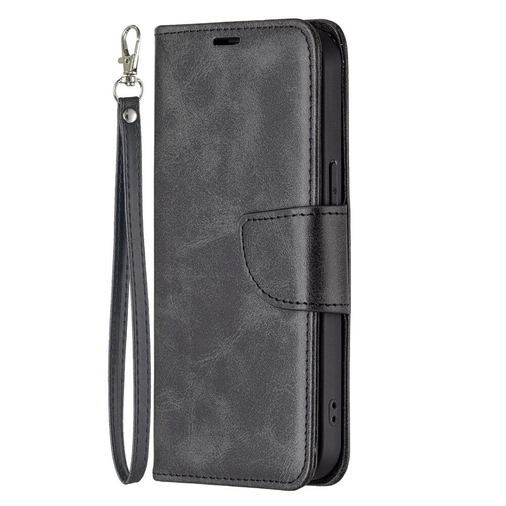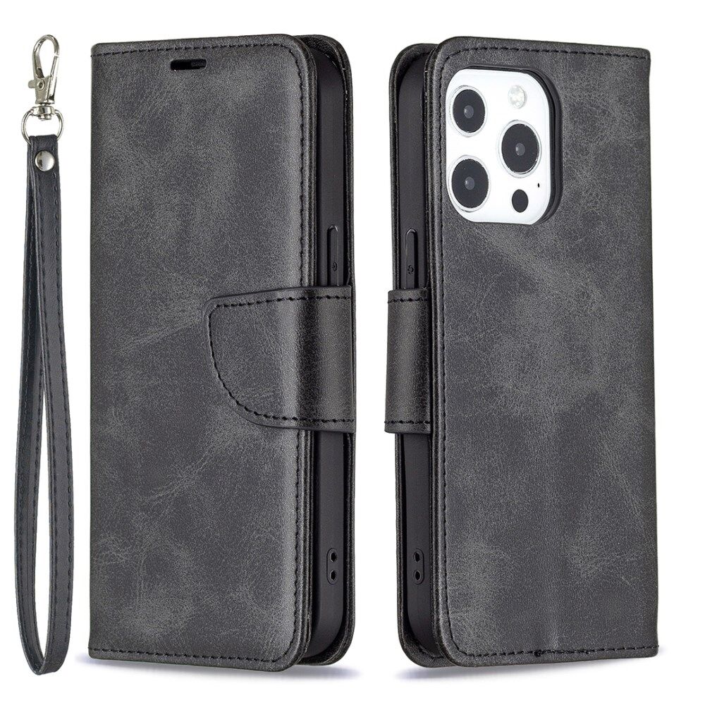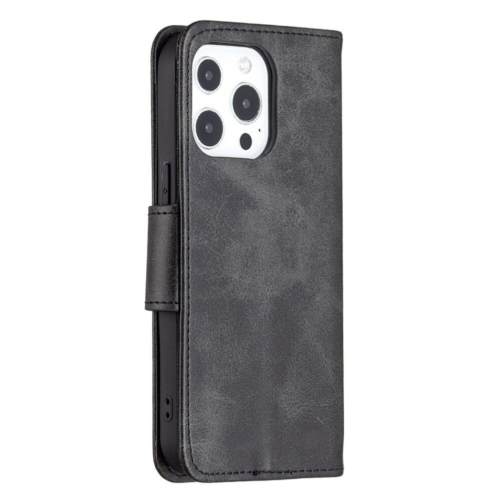 Solid Color PU Leather Wallet Cell Phone Case Shell with Stand for iPhone 13 Pro - Black