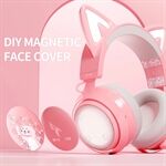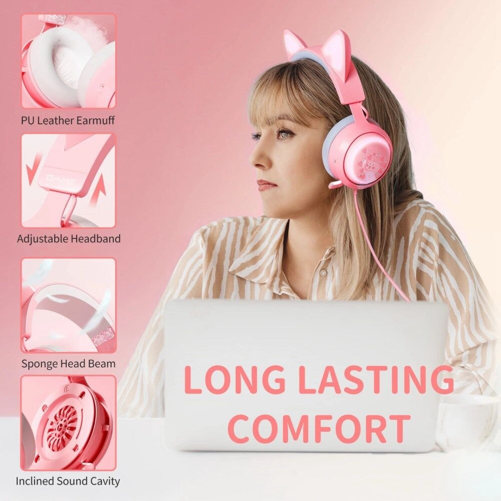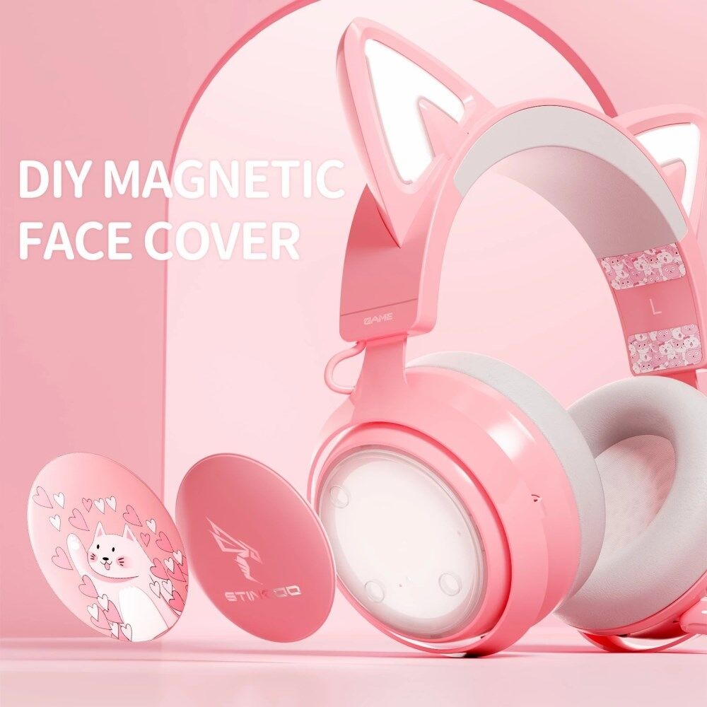 SOMIC GS510 Cat Ear Design USB+3.5mm Wired Over-Ear E-sports Headphone Music Gaming Headset with LED Light - Pink
