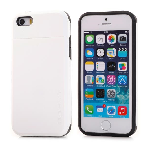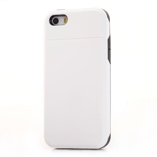 SPIGEN plastic and silicone cover with hidden card holder for iPhone 5 / 5S - White
