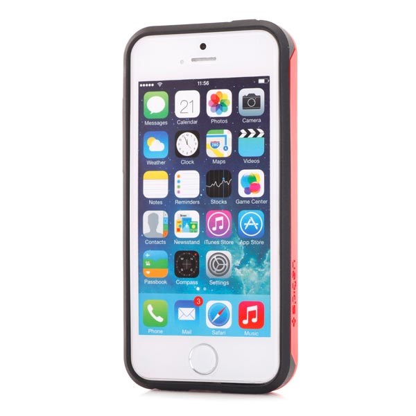 Functional and protective SPIGEN cover for iPhone 5 / 5S, which contains space for cards on the back. The cover is composed of both plastic and shock absorbing silicone, which provides a complete and desirable protection.