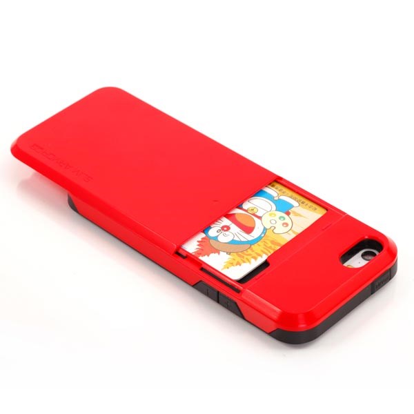 SPIGEN plastic and silicone cover with hidden card holder for iPhone 5 / 5S - Red
