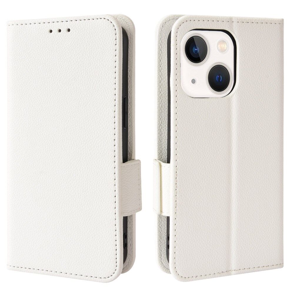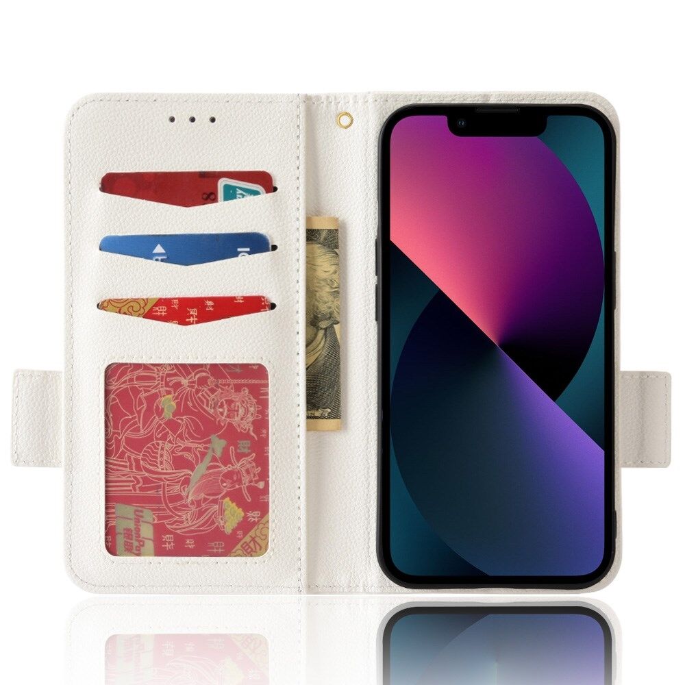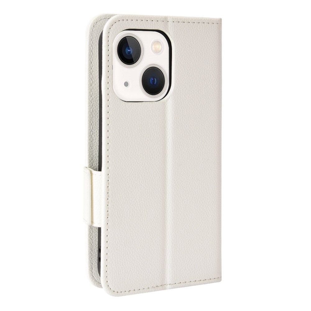 Stand Function Litchi Texture PU Leather Wallet Case Magnetic Clasp Folio Flip Cover for iPhone 13 mini 5.4 inch - White
