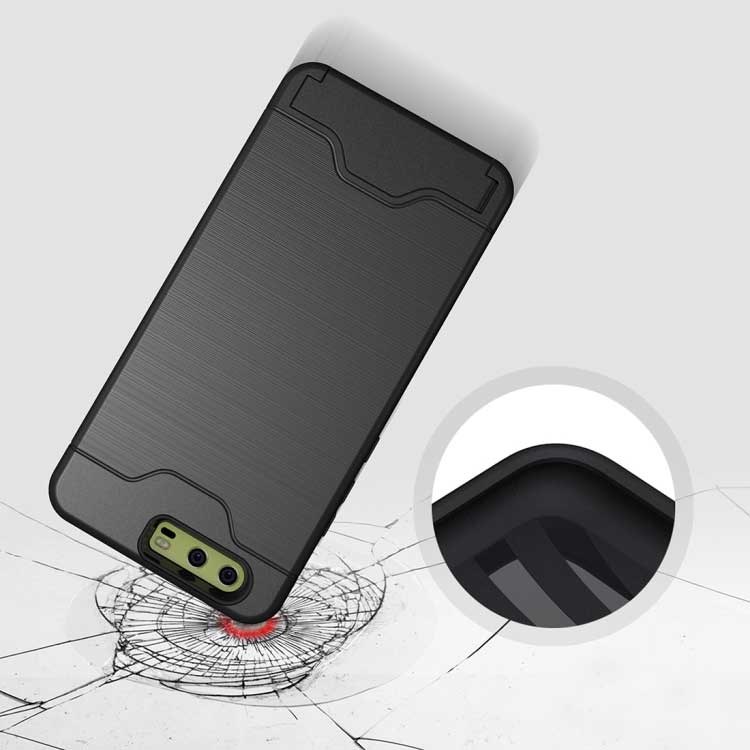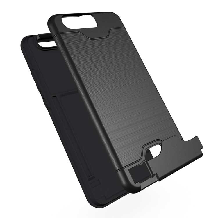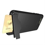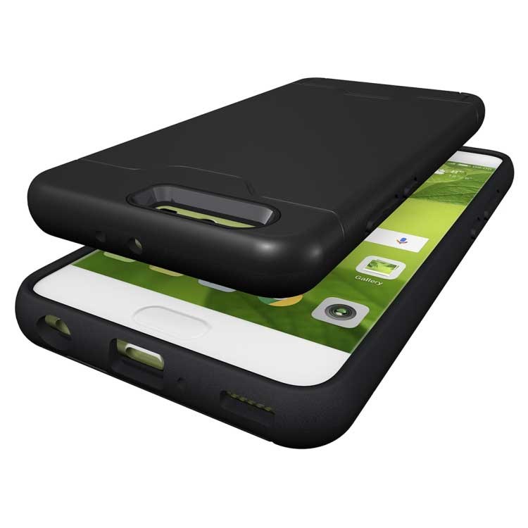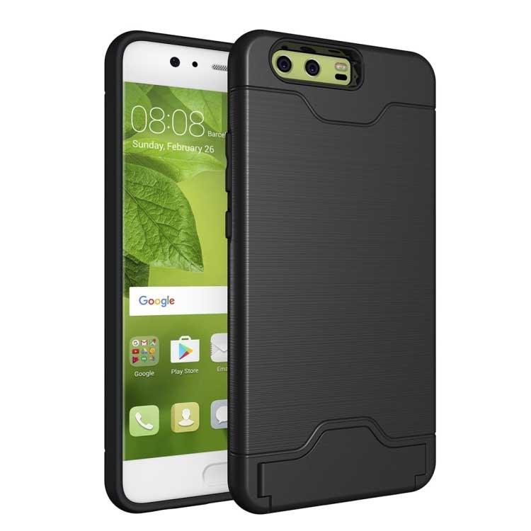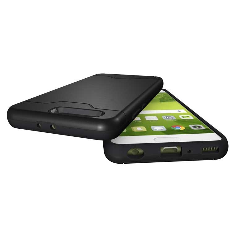 Steel Look Cover in TPU and PC w / Card Holder and Kickstand for Huawei P10 Plus - Black