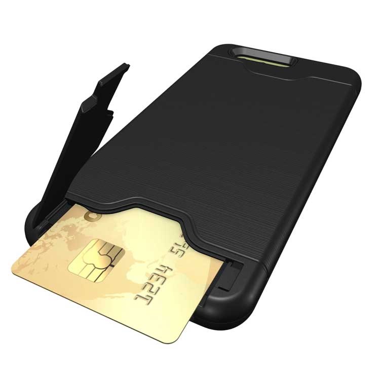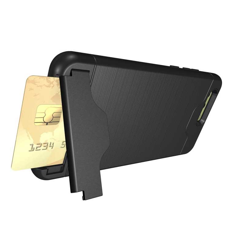 Steel Look Cover in TPU and PC w / Card Holder and Kickstand for Huawei P10 Plus