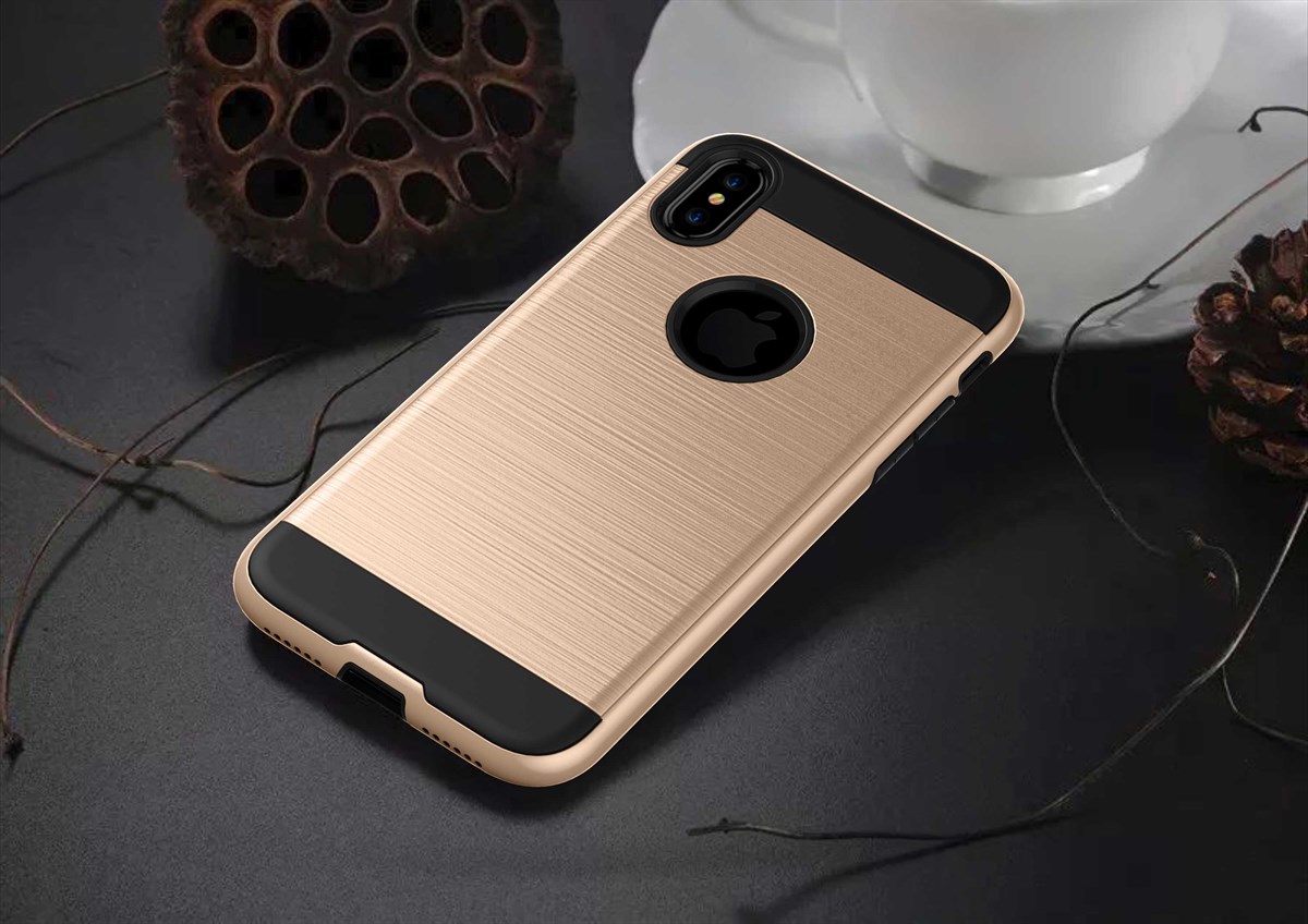Stylish Brushed Cover in TPU Plastic and Silicone for iPhone X / iPhone Xs - Pink Gold
