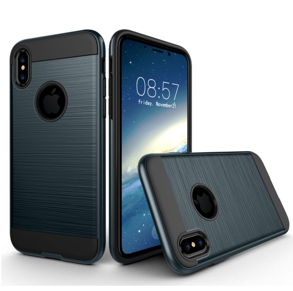 Stylish Brushed Cover in TPU Plastic and Silicone for iPhone X / Xs - Dark Blue
