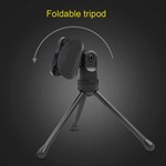 A nice design - handheld black Microphone with a gray grille head and a small black Tripod.