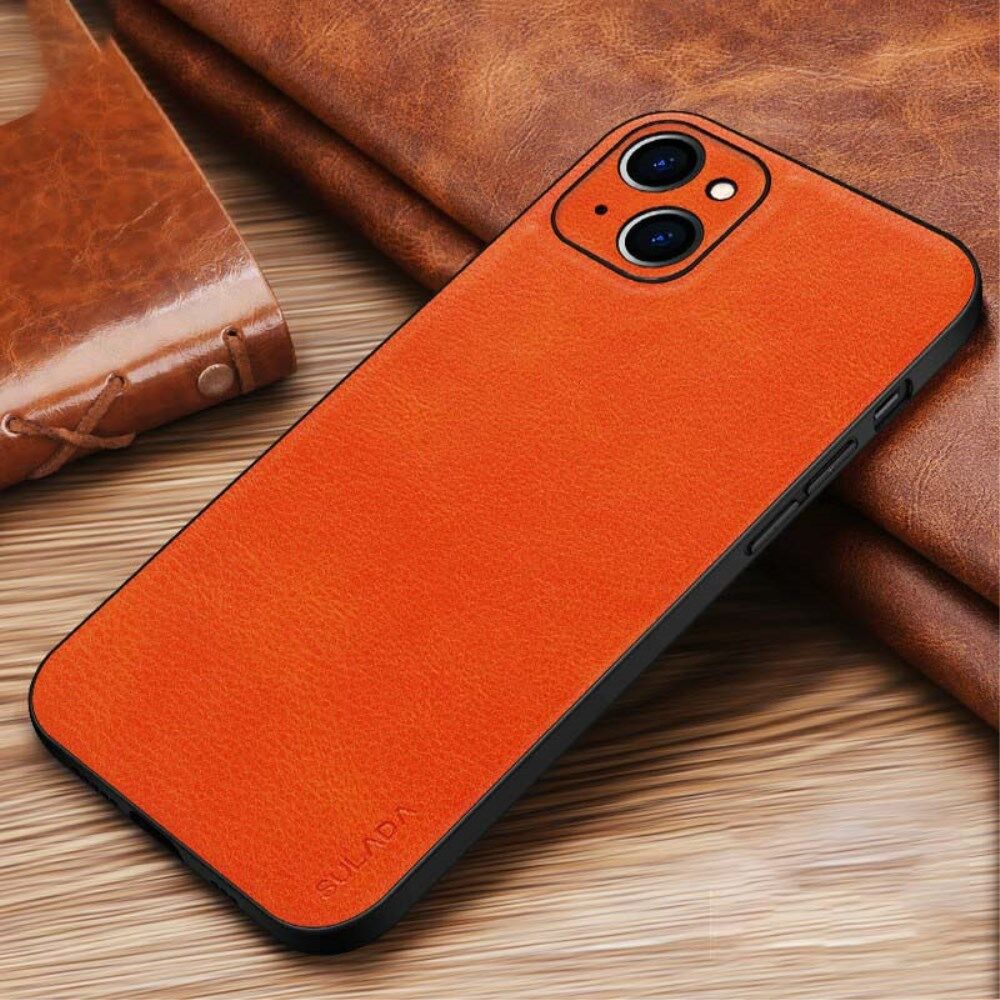 SULADA PC + TPU + PU Leather Phone Cover Phone Case Special Precise Cutout Design for iPhone 13 6.1 inch - Orange